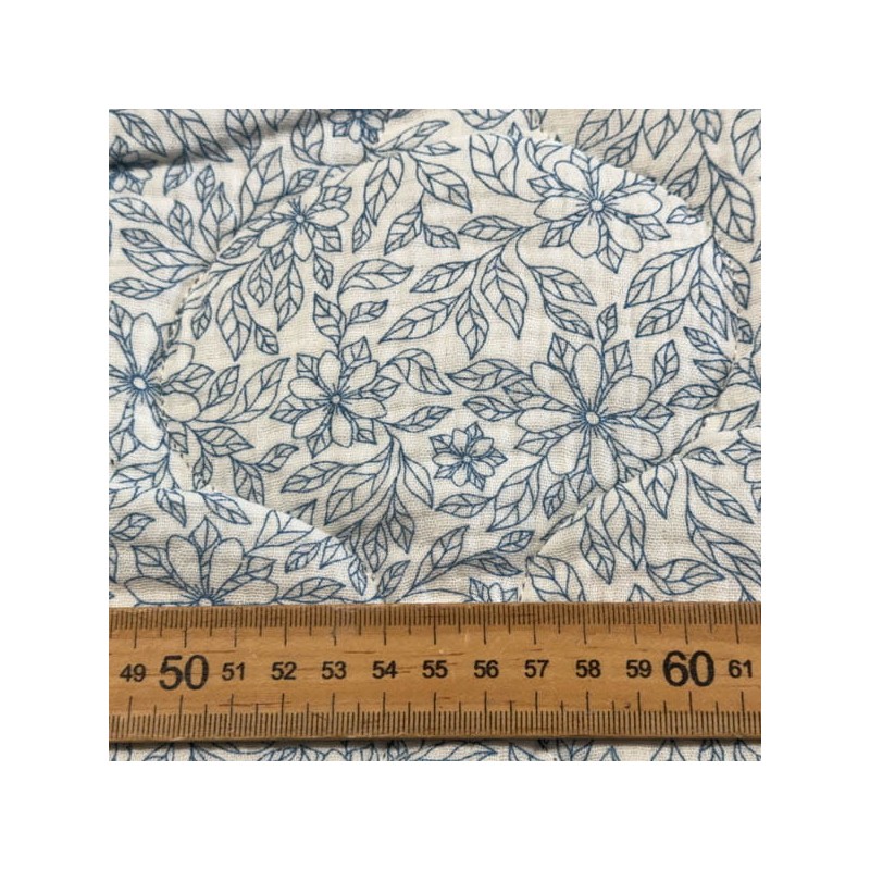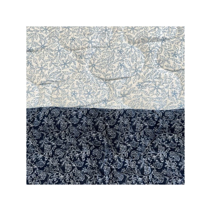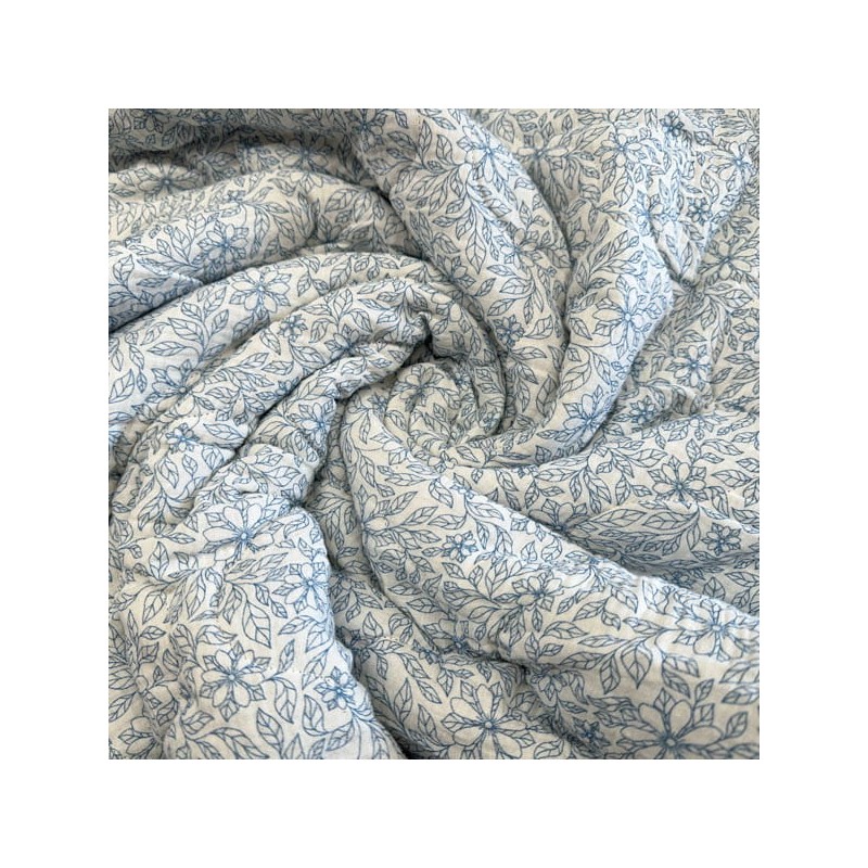 Tela acolchada de 3 capas cosidas entre ellas, las dos exteriores son de muselina estampada, es una tela reversible.
