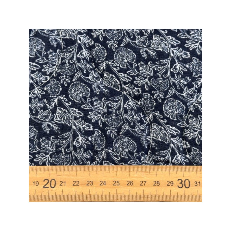 Tela acolchada de 3 capas cosidas entre ellas con un ancho de 130 cm. Esta tela no es elástica. Las dos capas exteriores son de muselina estampada, 100% algodón y la capa central es de guata, 100% poliéster. Ideal para chaquetas, parkas, bolsos, complementos ...