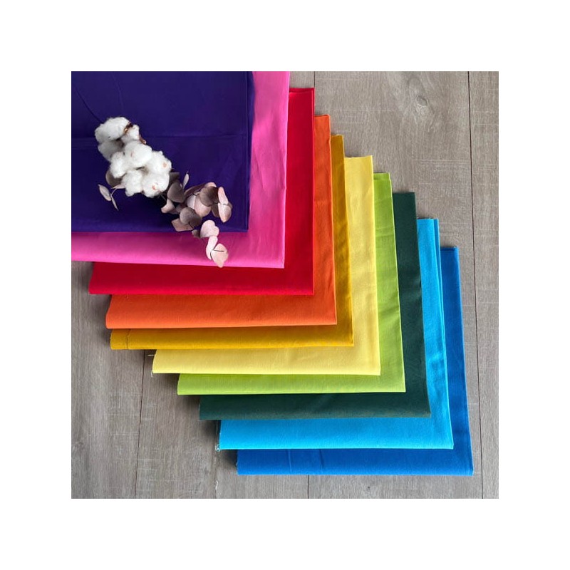 - 10 colores de popelín de algodón orgánico 50x50 cm y 140 g/m2.