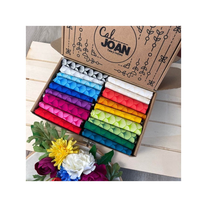 - 18 colores de popelín de algodón estampado ginko de 30x75 cm cada una.