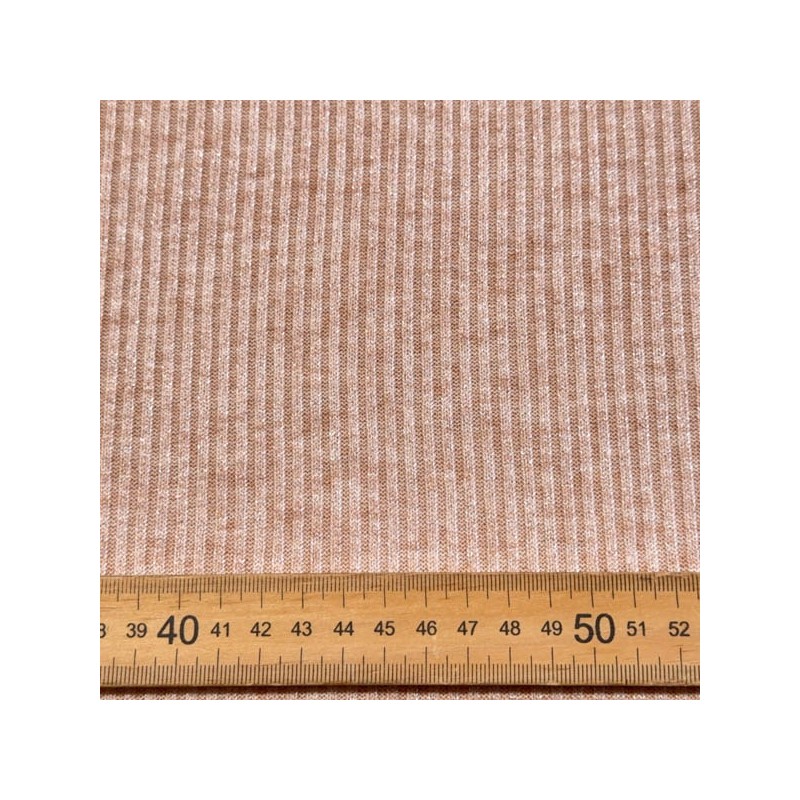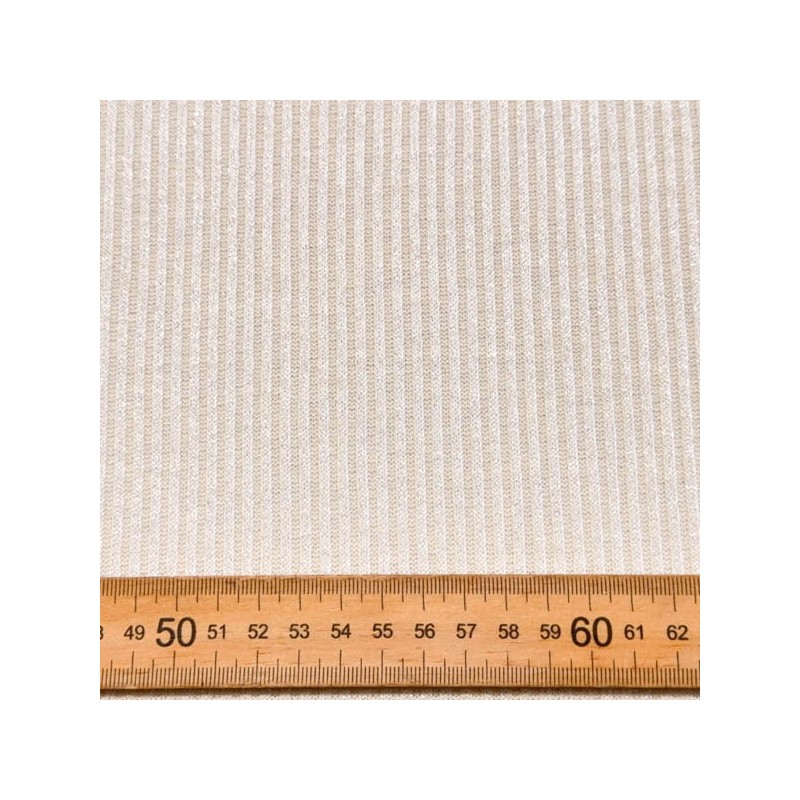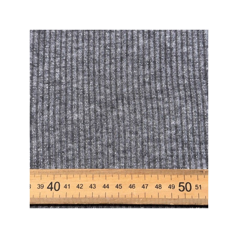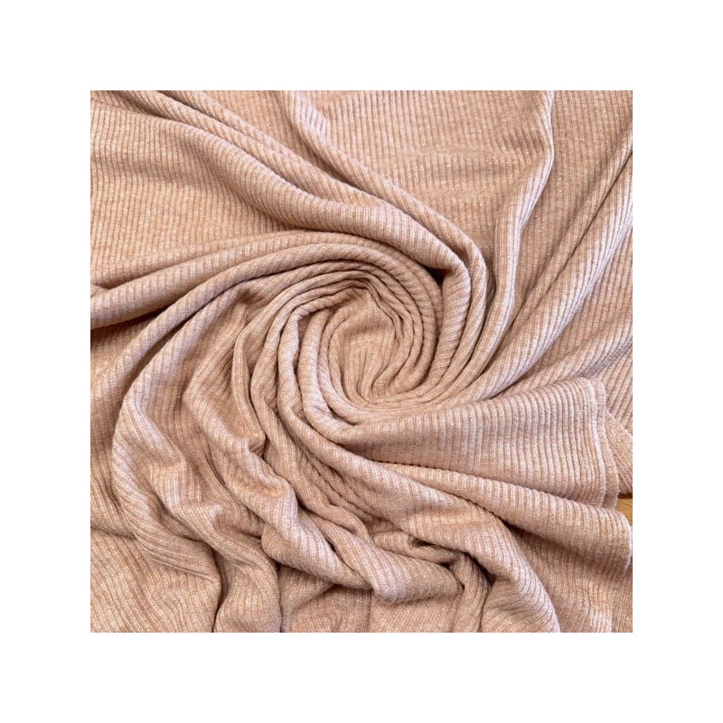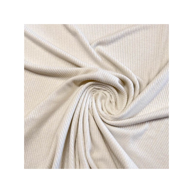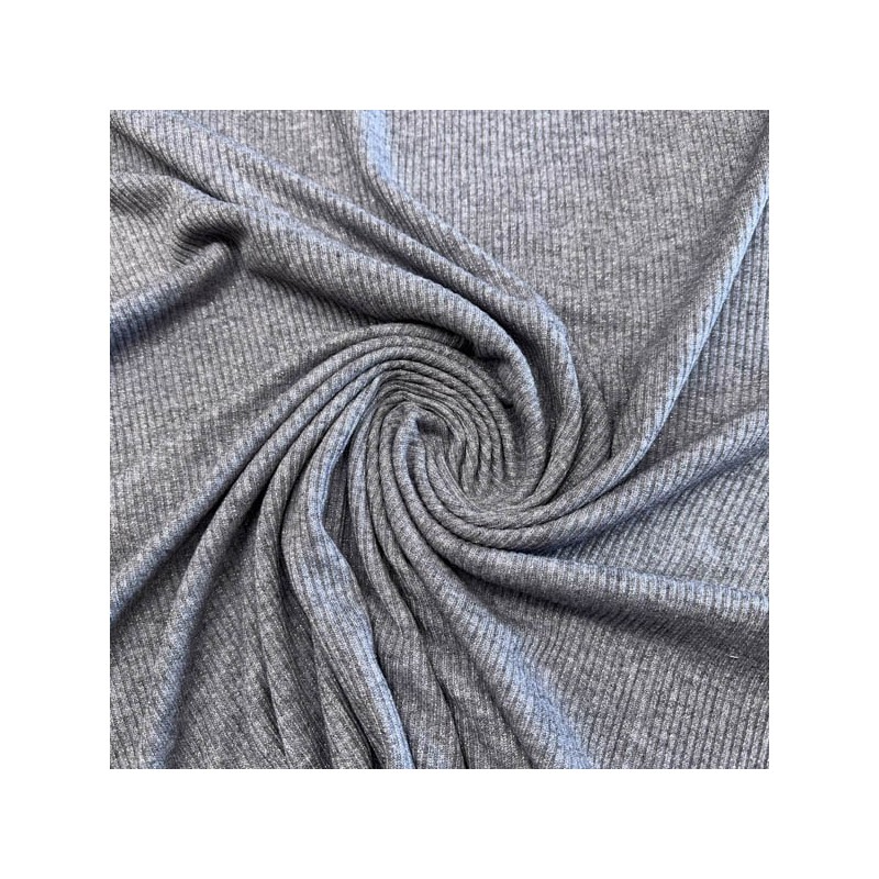 Tela de punto de jersey tejido haciendo canalé con una composición 46% viscosa, 34% poliéster, 20% poliamida y tiene un ancho de 150 cm. Es una tela con tacto suave y esponjosa, con mucha elasticidad(40% a lo ancho), con caída . Ideal para chaquetas, jerséis, decoración, vestidos, sudaderas, faldas ...