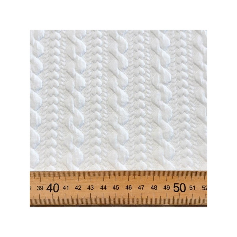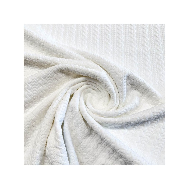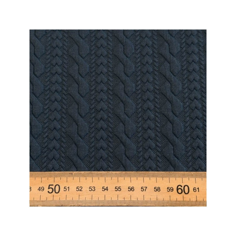Tela de punto interlock tejido haciendo nudos con una composición 98% poliéster, 2% elastan y tiene un ancho de 150 cm. Esta tela elástica es cálida y esponjosa, pero tiene caida por lo que no queda tiesa. Ideal para chaquetas, jerséis, decoración, vestidos, sudaderas, faldas ...