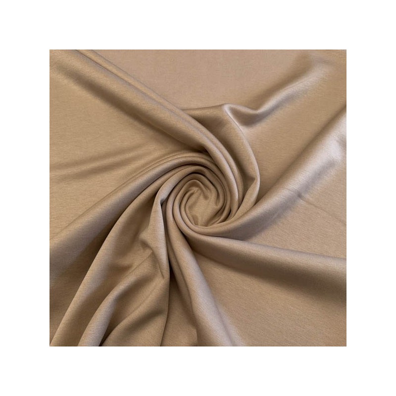 Tela de punto bicapa, el interior es un punto de neopreno y el exterior una tela de jersey muy suave con una composición 52% poliéster, 43% viscosa, 5% elastan y un ancho de 155 cm. Ideal para pantalones, jerséis, faldas, chaquetas, vestidos ...