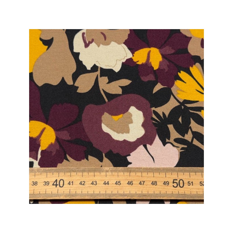 Tela de punto roma con estampado clásico con una composición 60% poliester, 35% viscosa y 5% elastan, tiene un ancho de 150 cm. Es una tela elástica cálida y esponjosa pero a la vez resistente y con cuerpo (no babosa). Solo tiene una elasticidad del 20% a lo ancho y una ligera elasticidad en el largo. Ideal para pantalones, vestidos, chaquetas, americanas, jersey ...