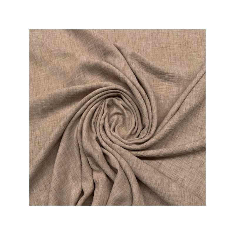 Tela suave, con textura de lino y mucha caida con una composición 100% políester y un ancho de 150cm. No tiene lino, pero lo parece. La tela es ligera y fina, no se arruga. Ideal para vestidos, pantalones, blusas, faldas, tops, pañuelos ...