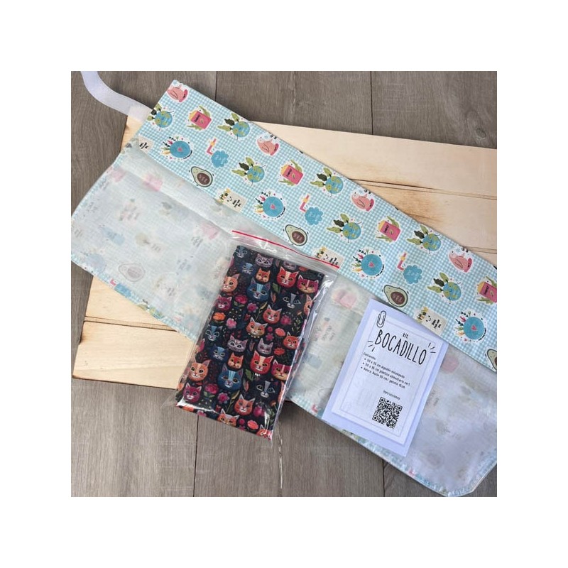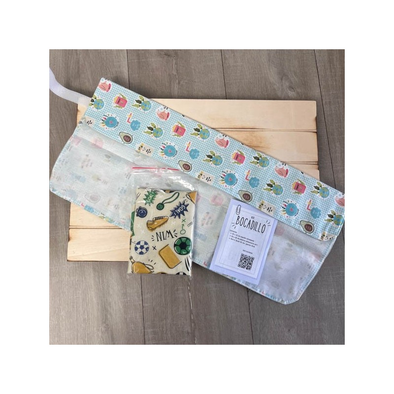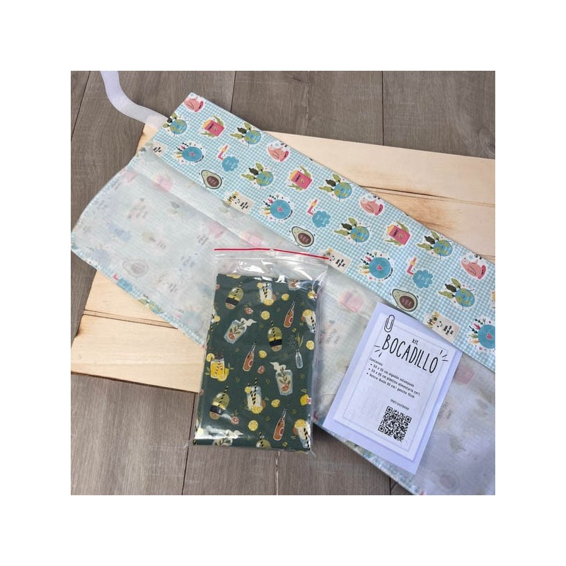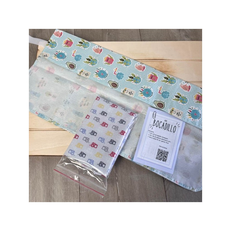 Kit con todo el material para coser tu propio envoltorio de bocadillo reutilizable.