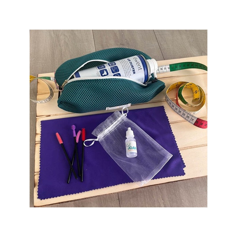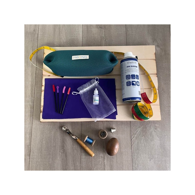 En el interior del neceser, materiales para dejar tu máquina de coser reluciente.