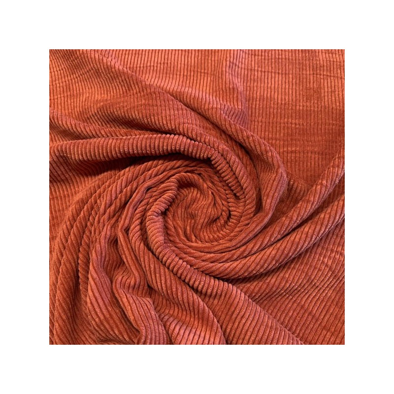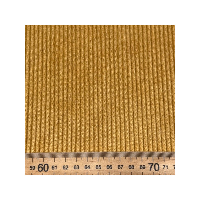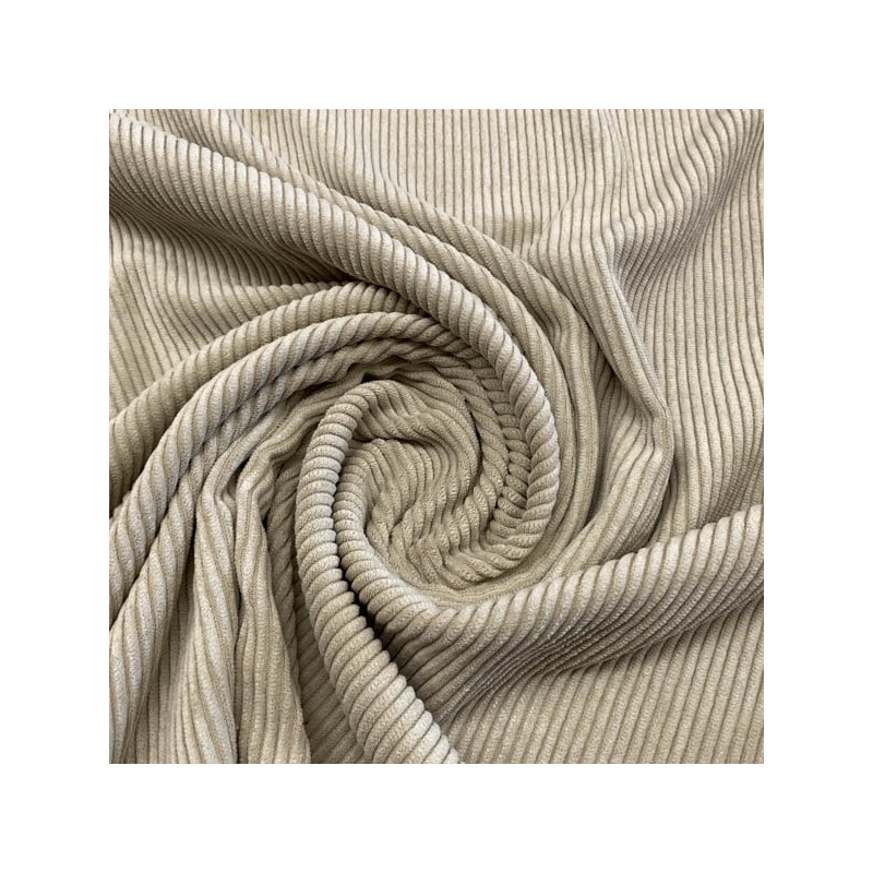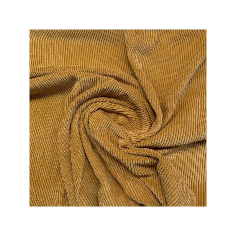 Tela de pana suave, esponjosa y con caída con una composición 85% algodón, 88% poliéster, 10 % nylon, 2% spandex y un ancho de entre 140 - 150 cm. El cordón de la pana es de 5 mm, Tiene caída, pero no es babosa. Se tiene que cortar en la dirección del hilo. Ideal para pantalones, chaquetas, tapizar, sobrecamisas, petos ...
