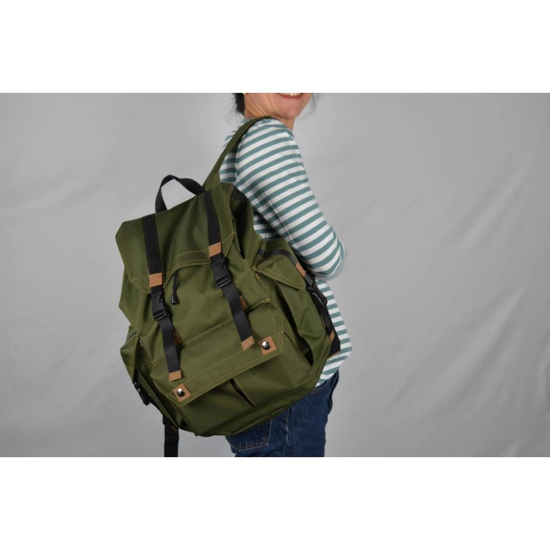 Telas medianas a gruesas con cuerpo sin caída y sin elasticidad, preferentemente impermeables, como acolchadas, lona encerada, 3D, vaquero; canvas, etc. Asegúrate de que tu máquina puede coser y que tengas. Telas medianas a finas como nylon, ripstop, popelina de algodón, poliéster, etc. Necesitarás materiales específicos según los bolsillos: broche a presión, cremalleras, cintas de mochila, hebilla, tensor, ojetes, cordón.