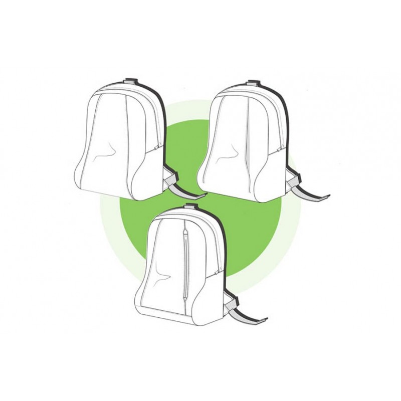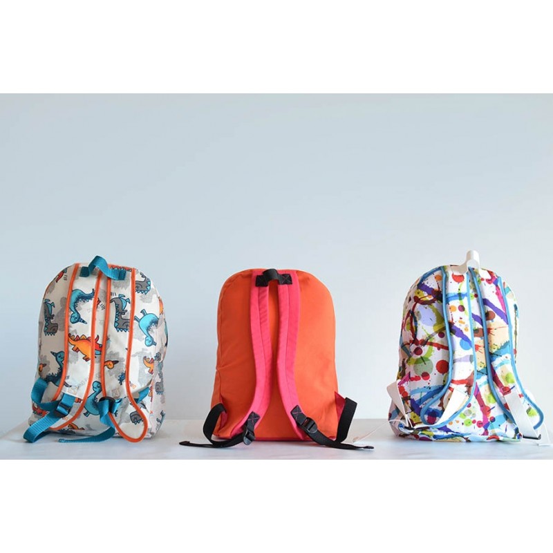 Patrón Backpack Hache. Patrón de mochila grande para llevar libretas , carpetas, estuches, ropa, etc. Tú eliges los acabados: con bies o forrada. Con o sin pliegue frontal, bolsillo frontal redondeado o vertical. Cinco opciones para coser la mochila. Posibilidad de jugar con diferentes telas.