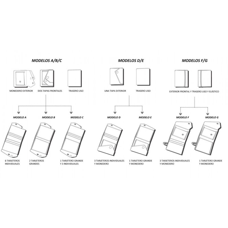 Los modelos A/B/C son los más completos, los modelos F/G más sencillos. Te vas a sorprender con la confección.