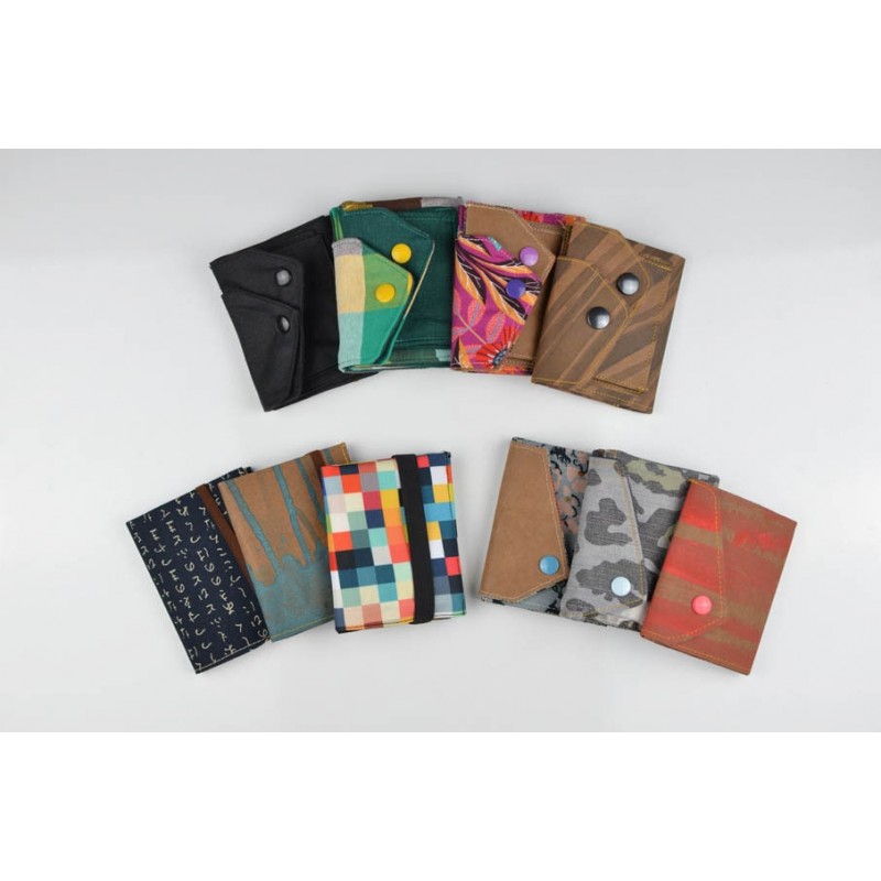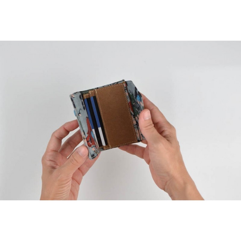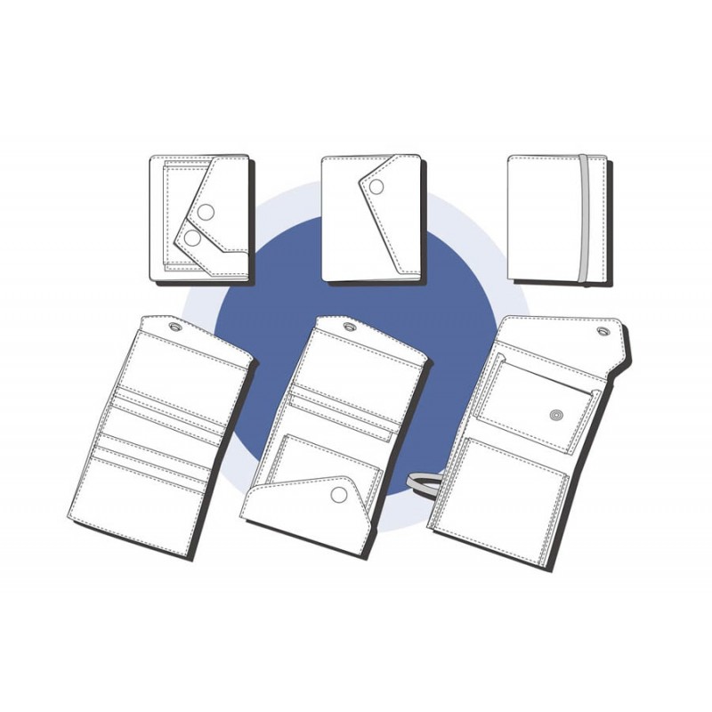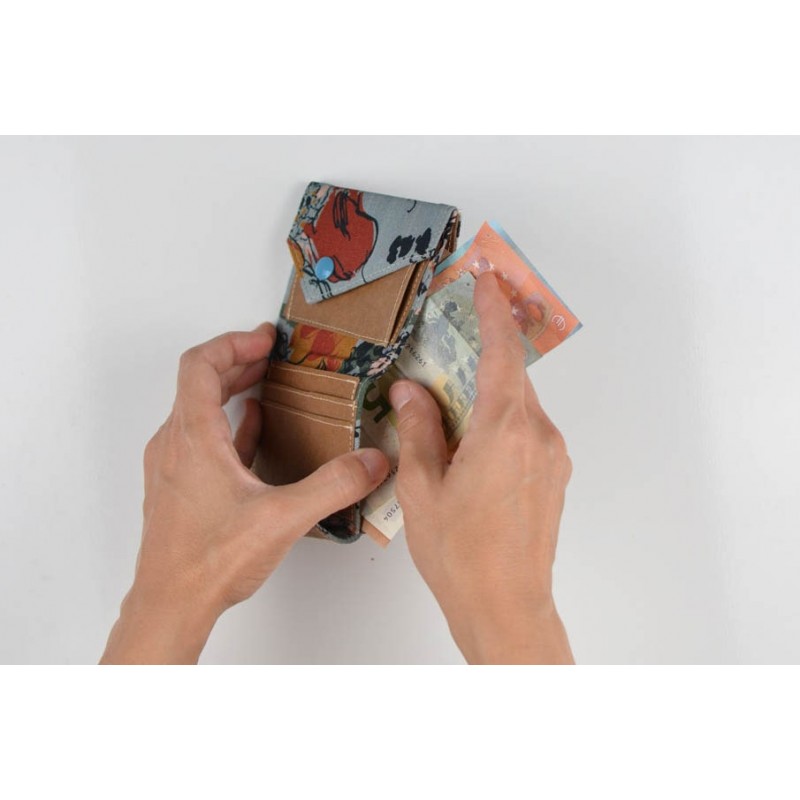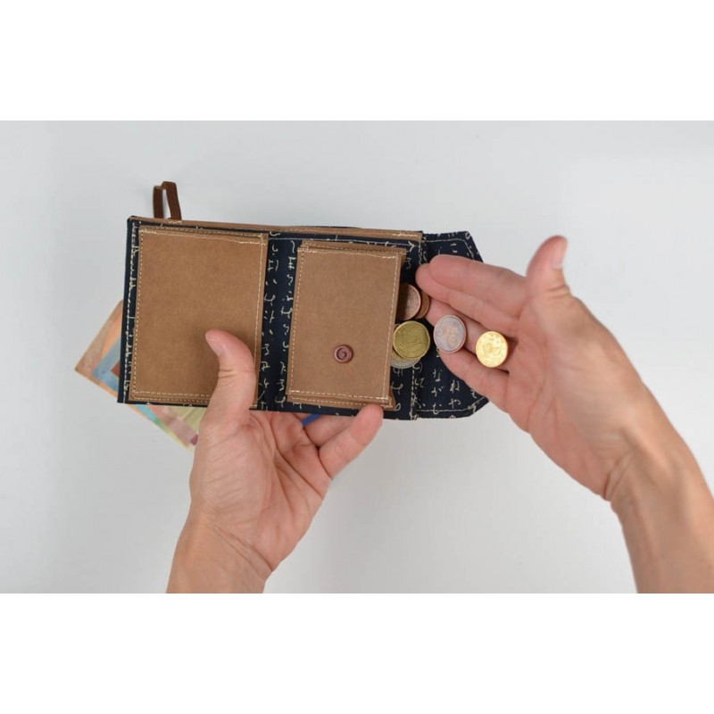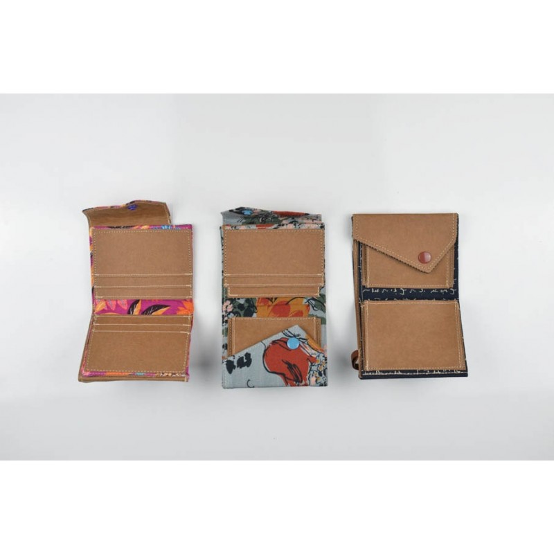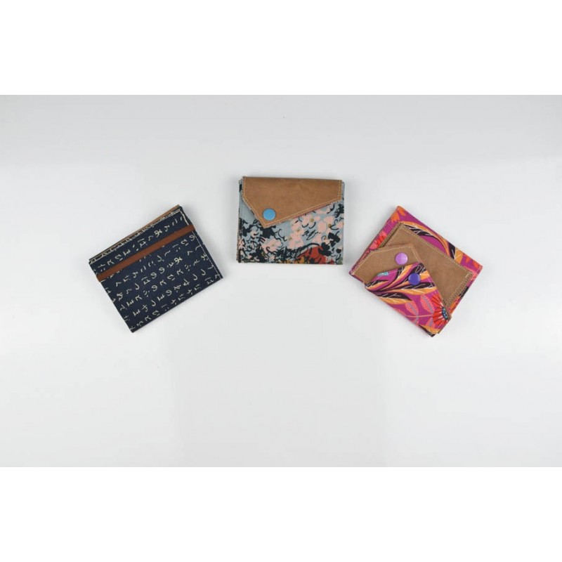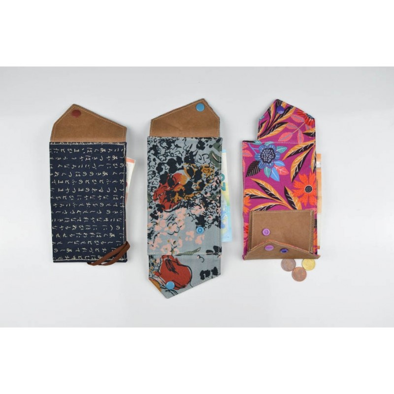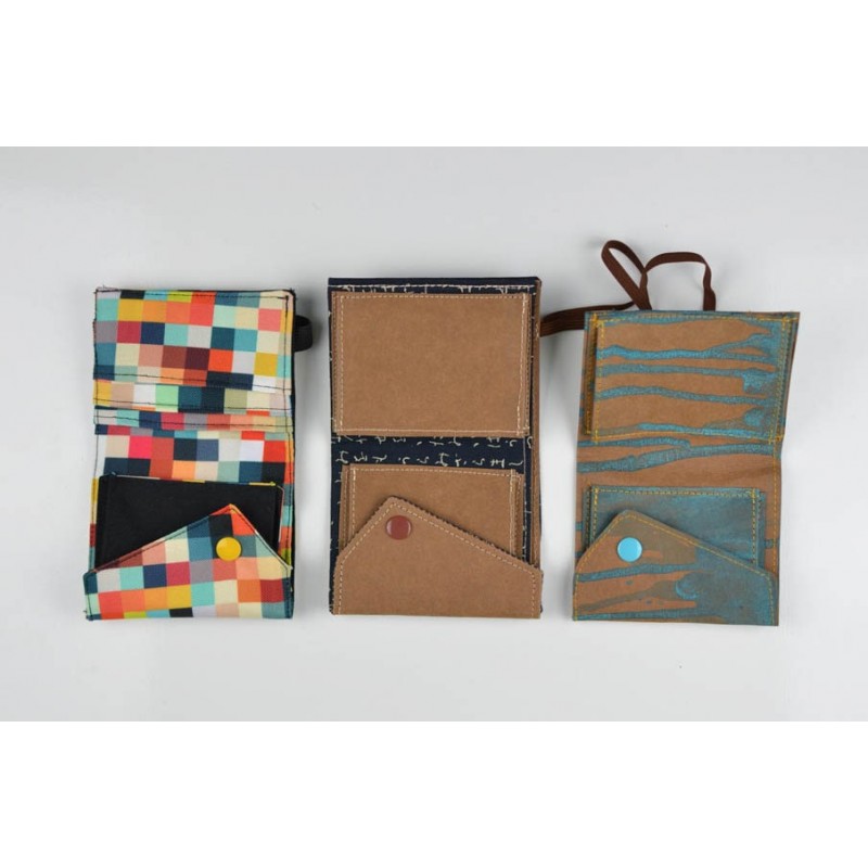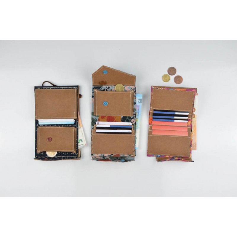 Patrón de la billetera Cartos. Billetera con 7 modelos para coser solo en tela, solo en kraft tex o con los dos materiales mezclados.