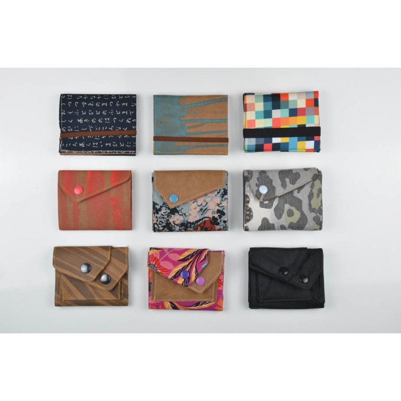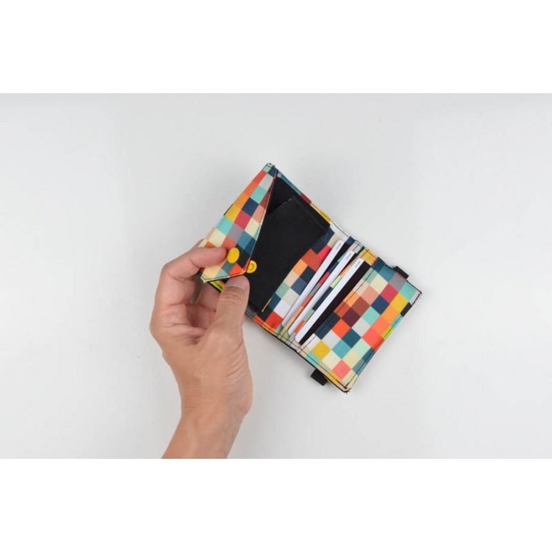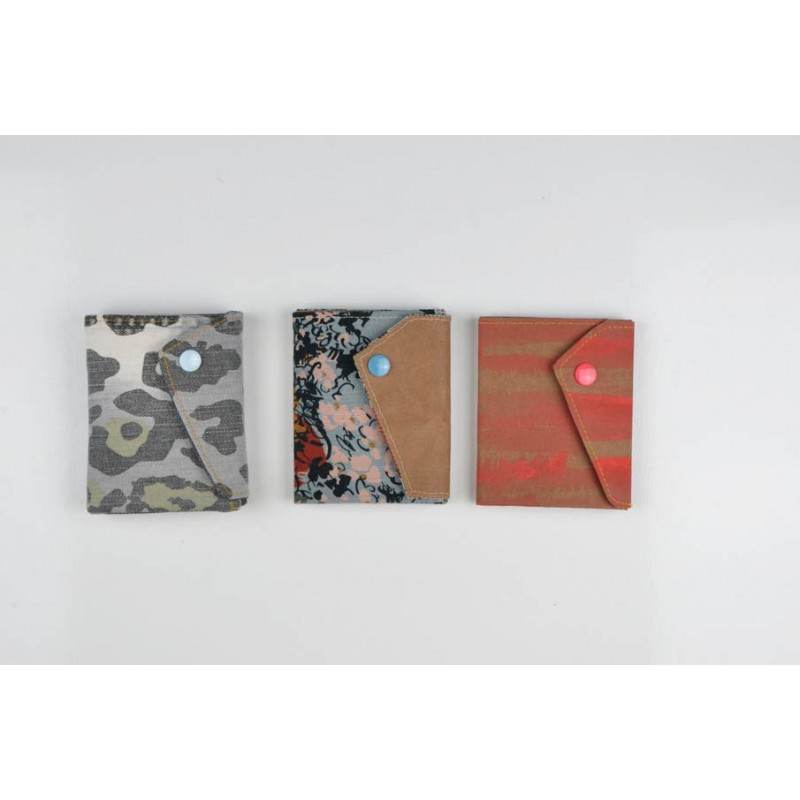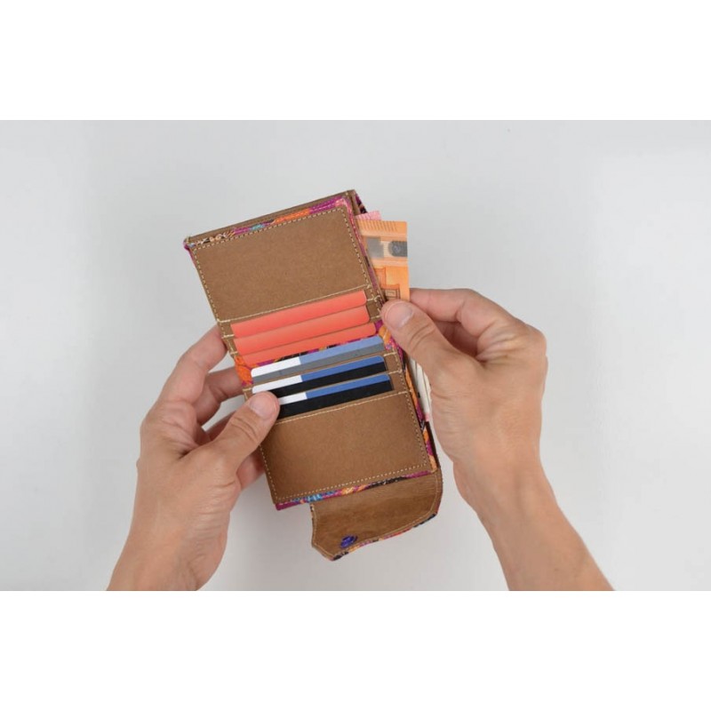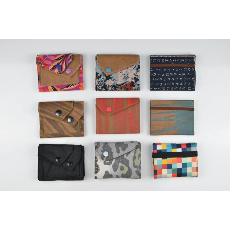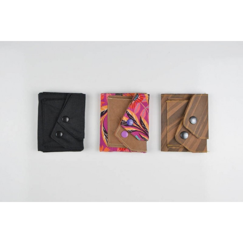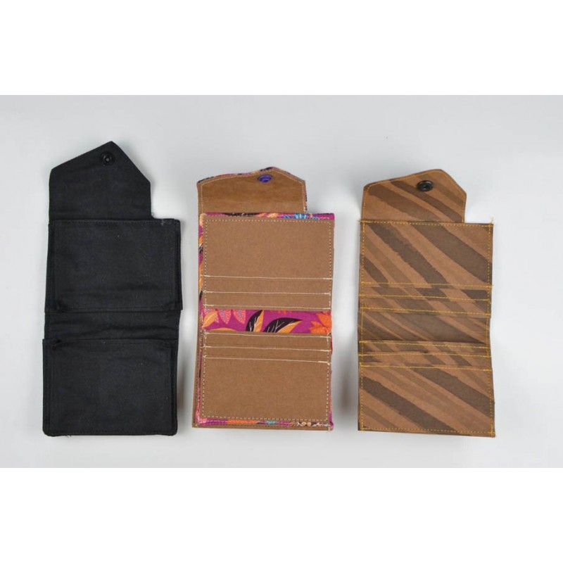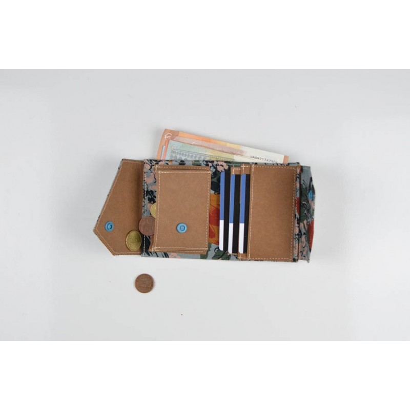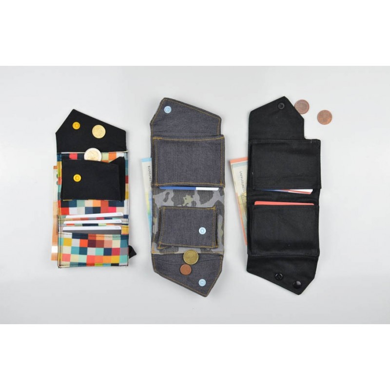Patrón de la billetera Cartos. Billetera con 7 modelos para coser solo en tela, solo en kraft tex o con los dos materiales mezclados.