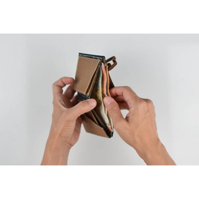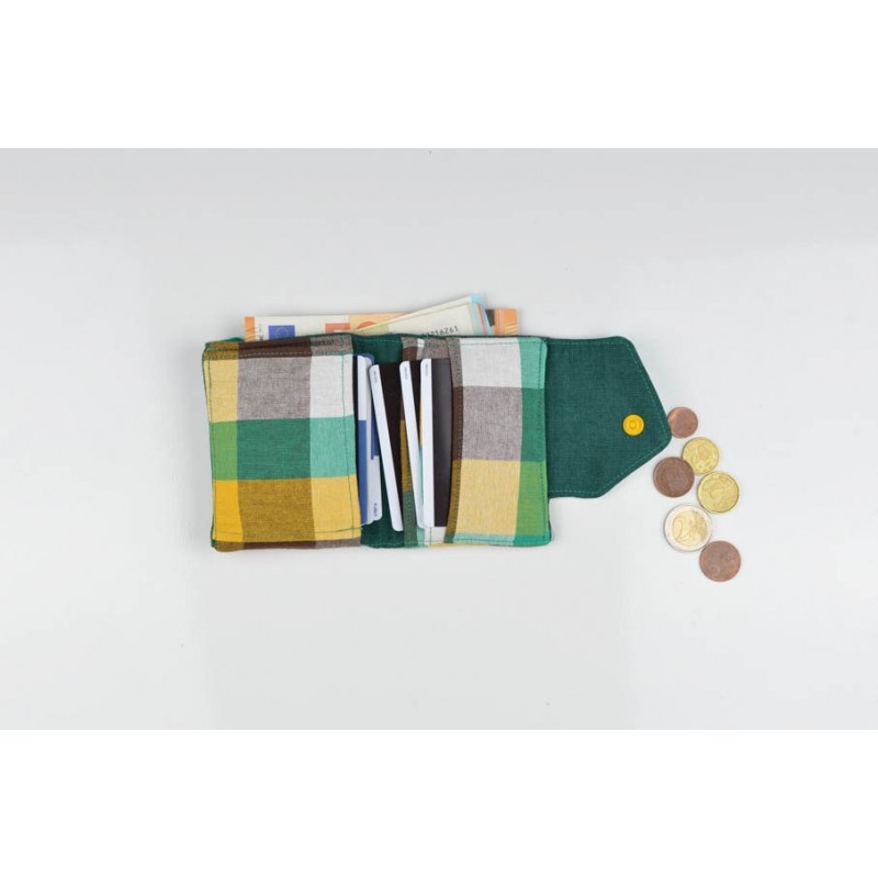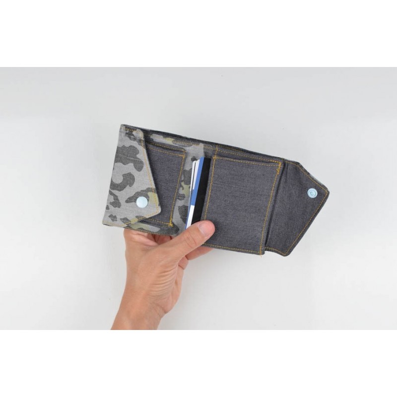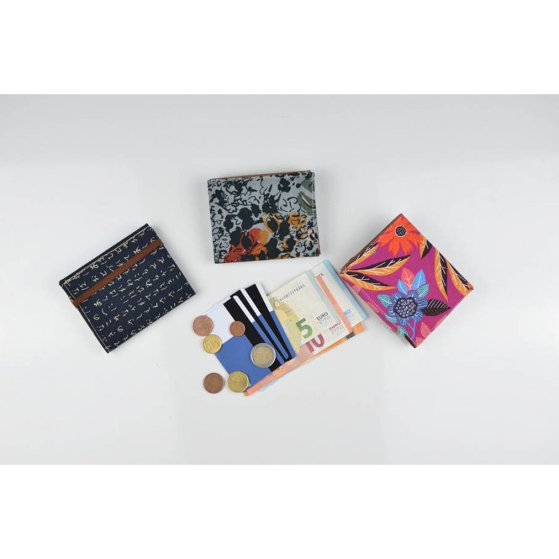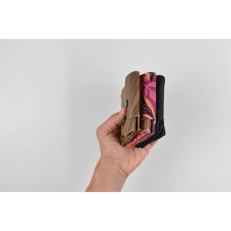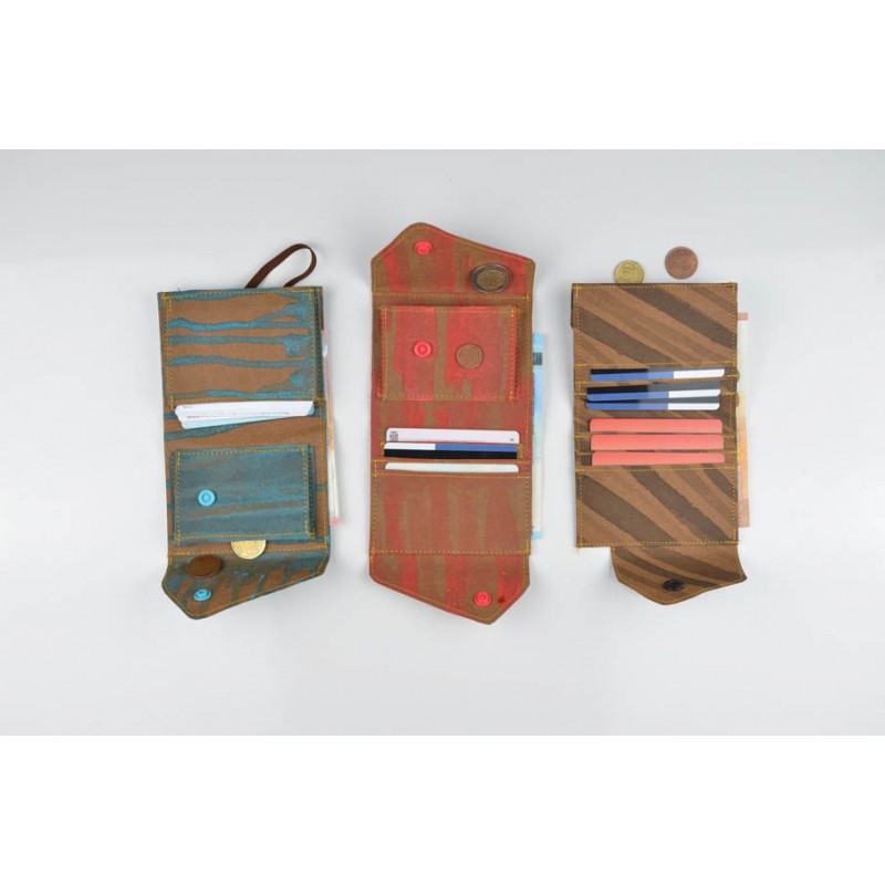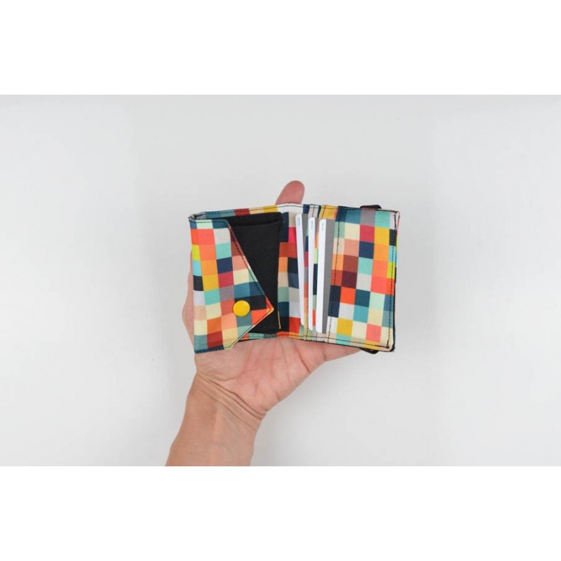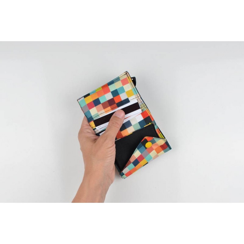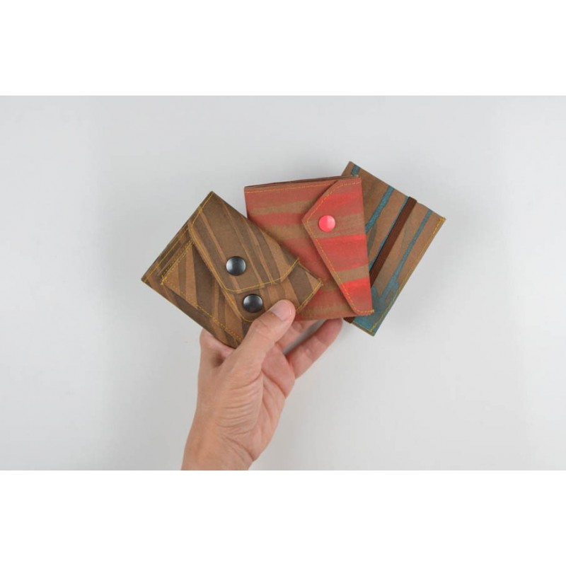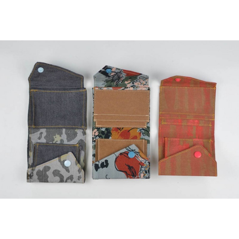 Patrón de la billetera Cartos. Billetera con 7 modelos para coser solo en tela, solo en kraft tex o con los dos materiales mezclados.
