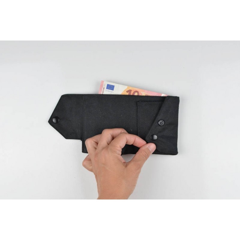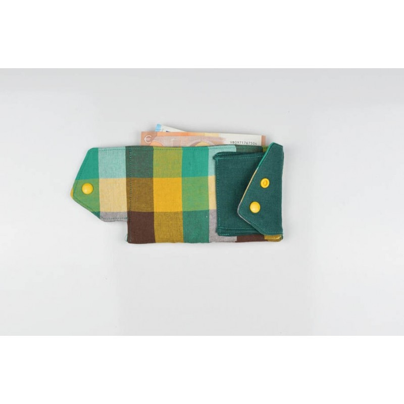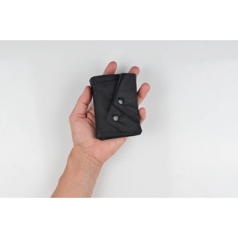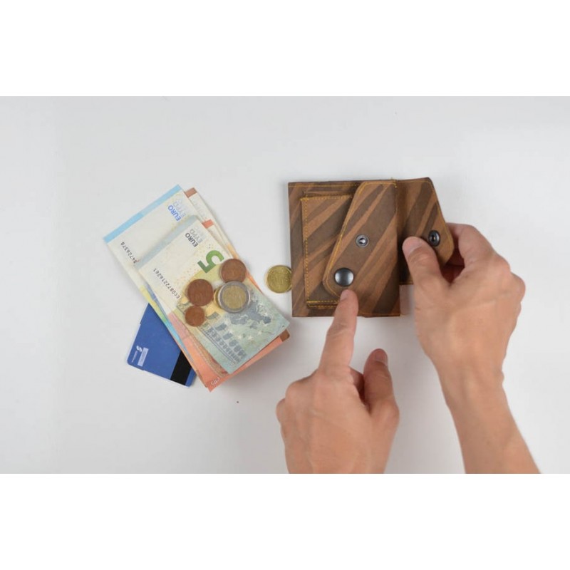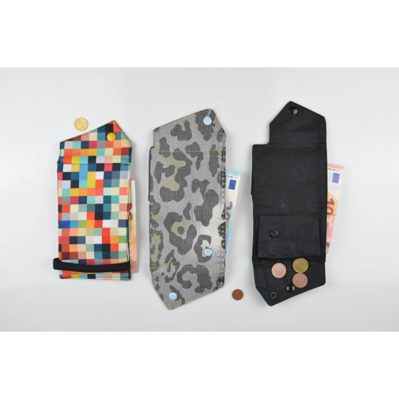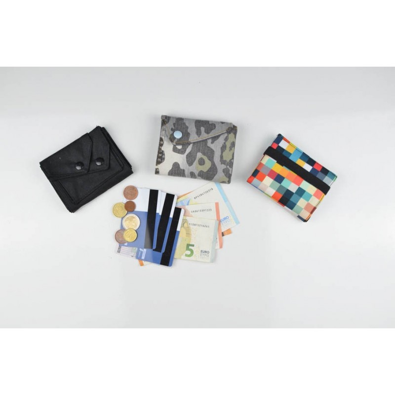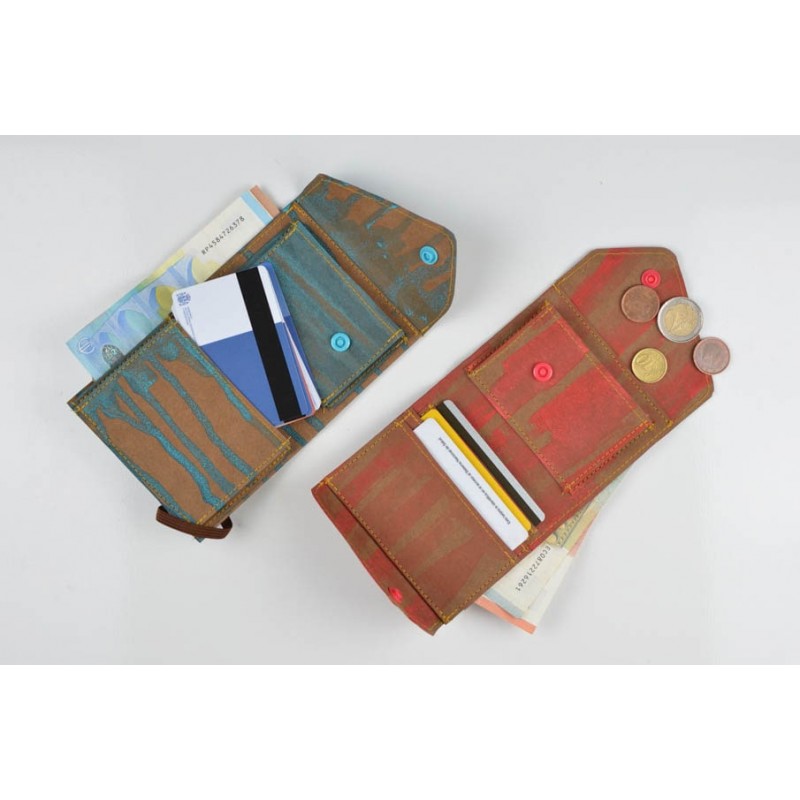 El monedero se cierra con un botón a presión y la billetera con un botón o elástico.