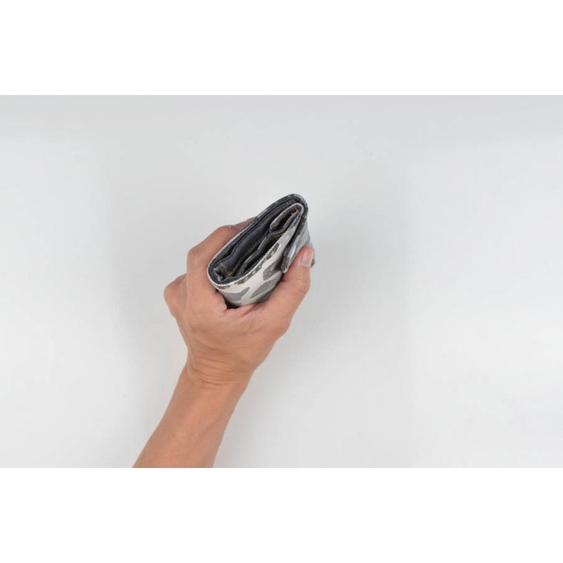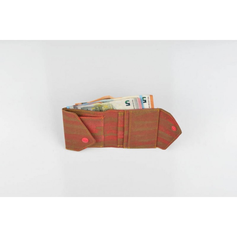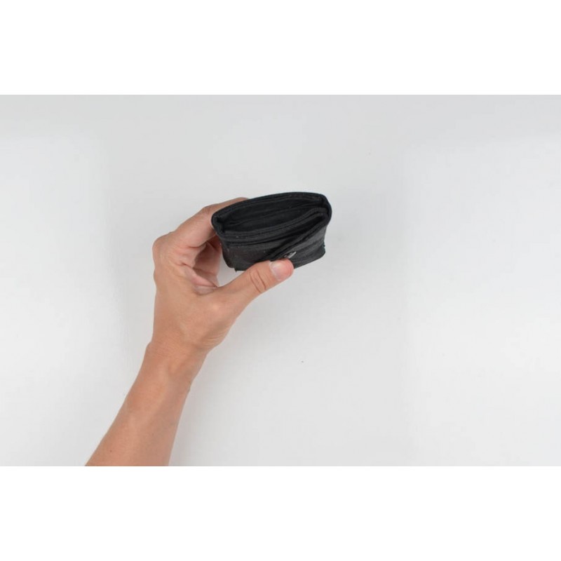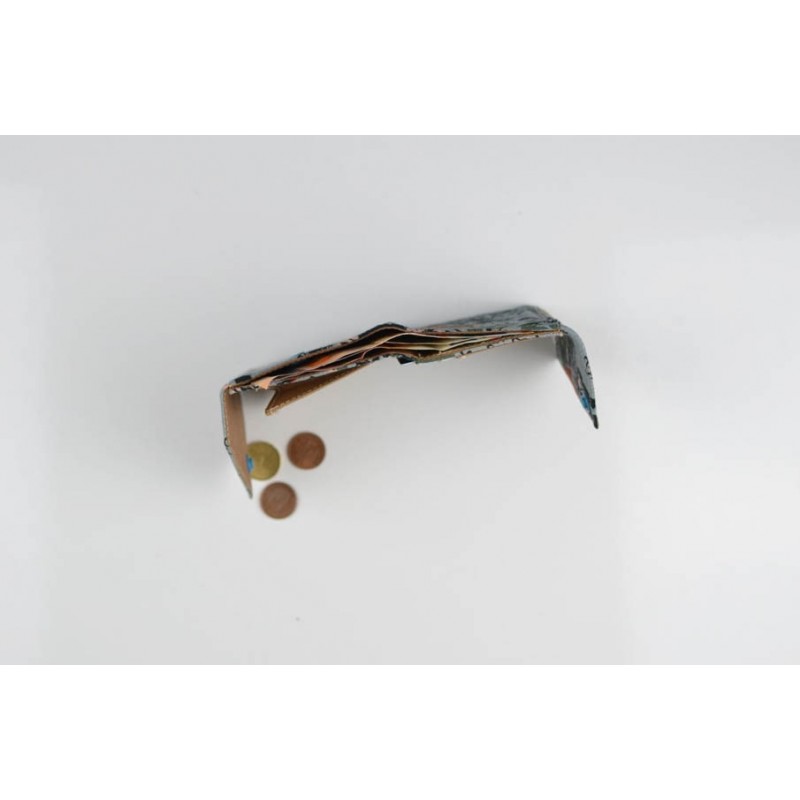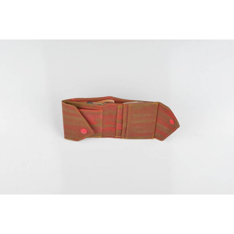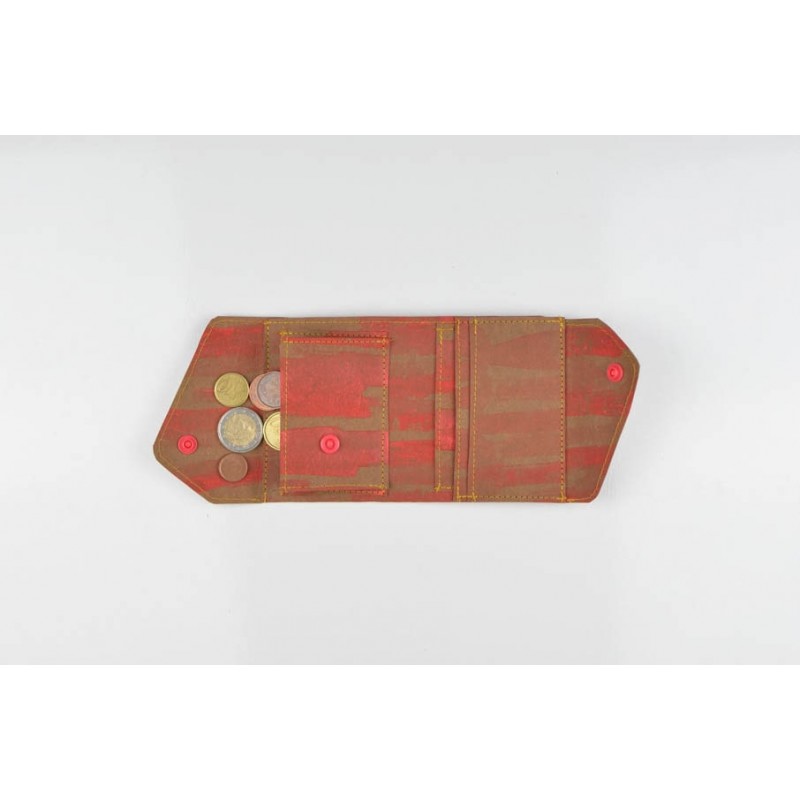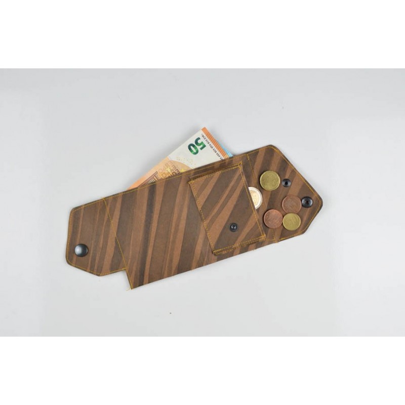El monedero se cierra con un botón a presión y la billetera con un botón o elástico.