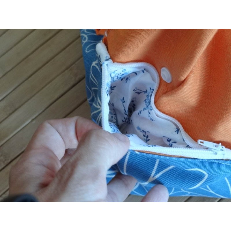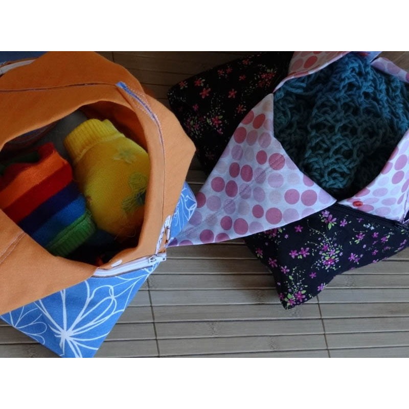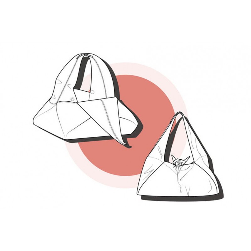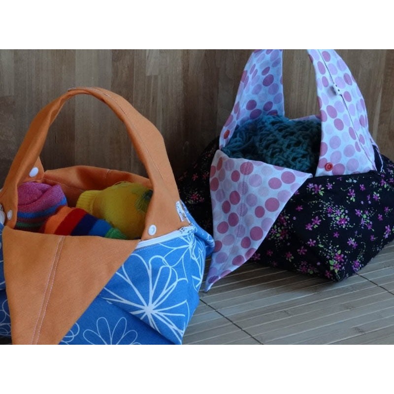 Patrón del bolso cuadrado plegable. Opcional bolsillos exteriores con cremallera.