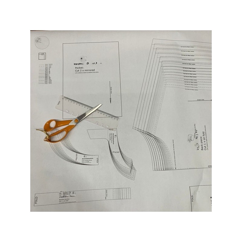 Servicio de impresión de patrones de costura en Din A0 en blanco y negro, en papel de 60gr que se envía plegado. Solo admitimos archivos en formato pdf en tamaño Din A0 (84.1x118.9cm).