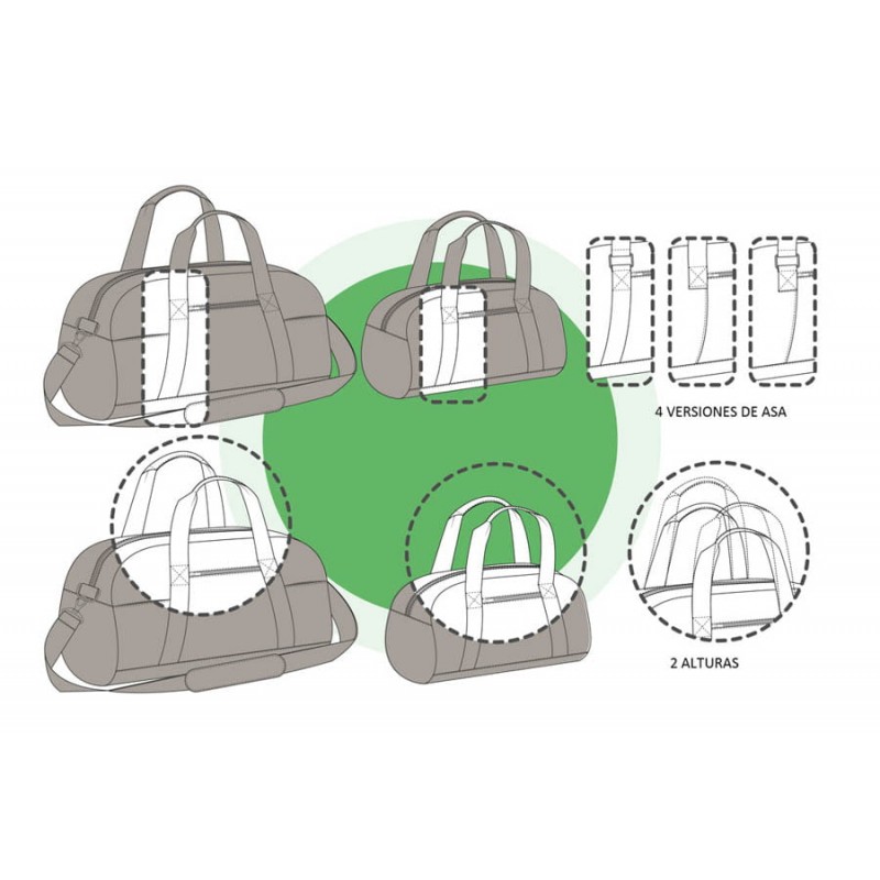 Cuatro tipos de asas en dos alturas cada una: largo de mano o largo de hombro.