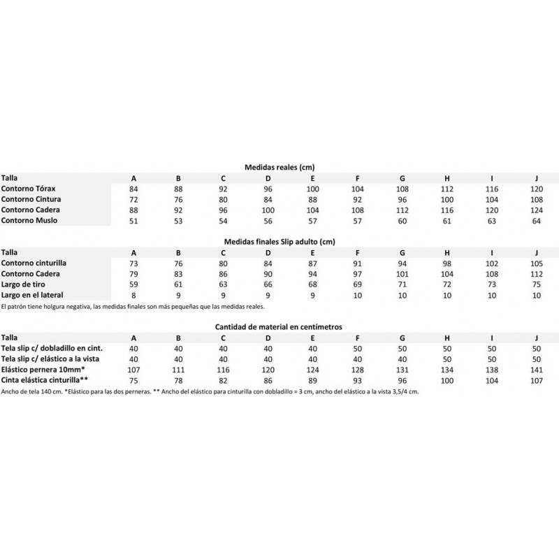 Tipo de tela recomendada: Tela de punto con un 30% de elasticidad minima. Elástico de 3.5/4 cm de ancho para la cinturilla Y 10 mm para pernera.