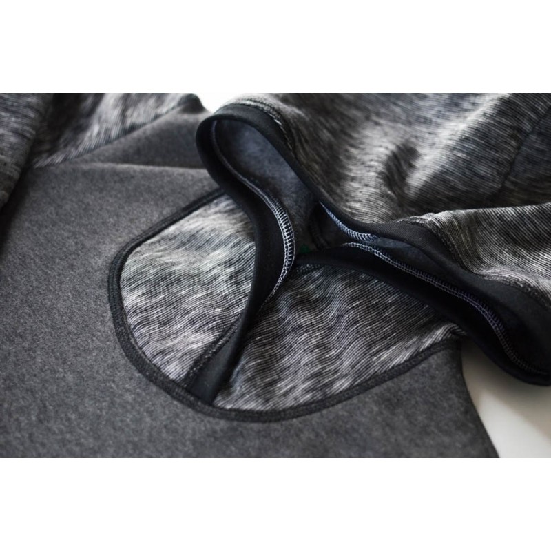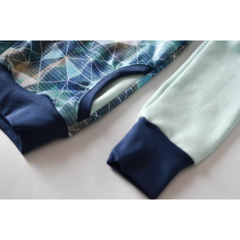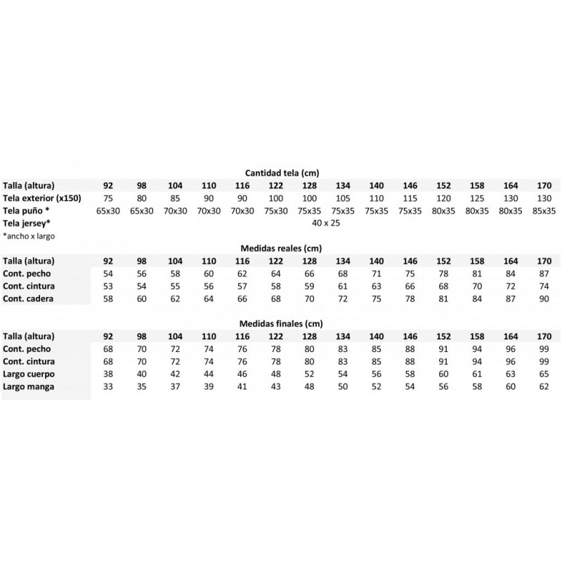 Para confeccionar esta sudadera puedes utilizar telas de sudadera o french terry con o sin elastan y forro de los bolsillos en jersey con o sin elastan. Tela de puño para cintura, bocamanga o sisa.