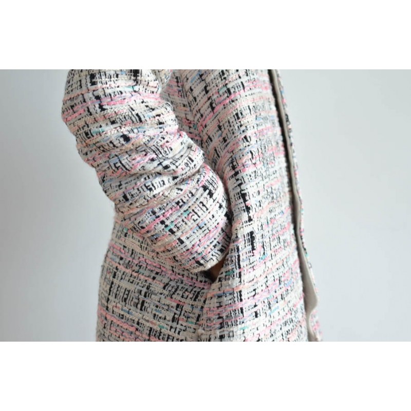 Para confeccionar este abrigo puedes utilizar para el exterior tejidos medianos a gruesos, sin elasticidad y adecuados para abrigos. Para el interior usar tejidos para forro con caida ligera, transpirables, suaves y antiestáticos. Entretela adecuada para los tejidos que vas a usar, 4 botones de 20 mm o más grandes (a tu gusto).