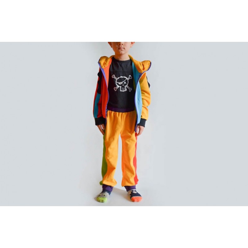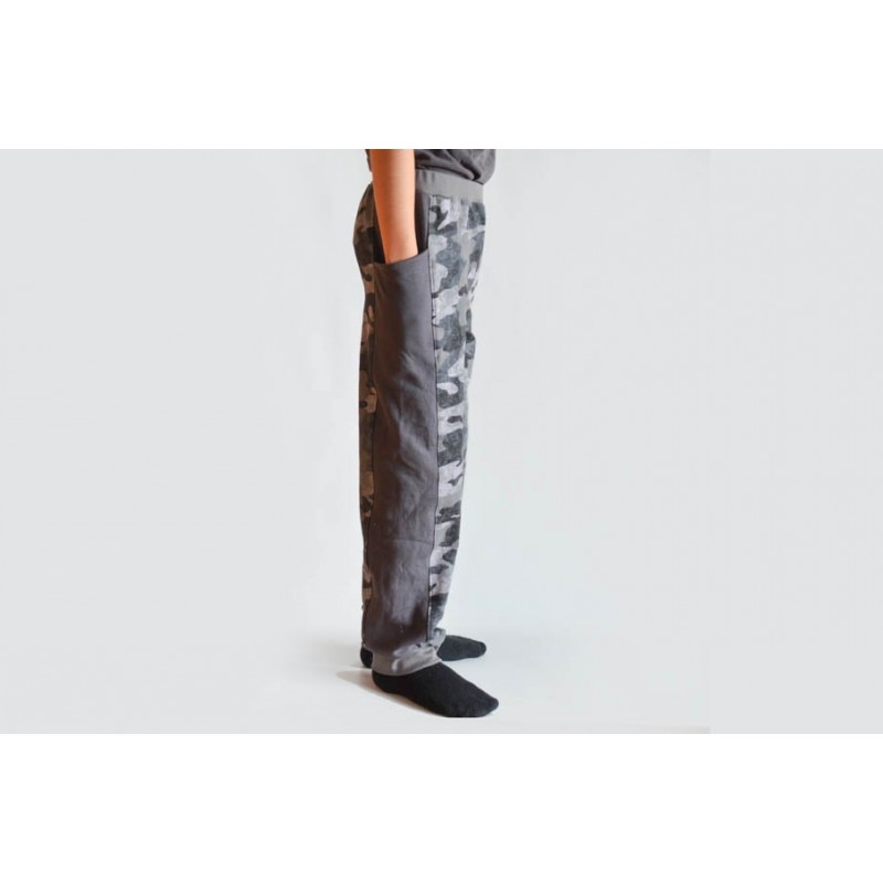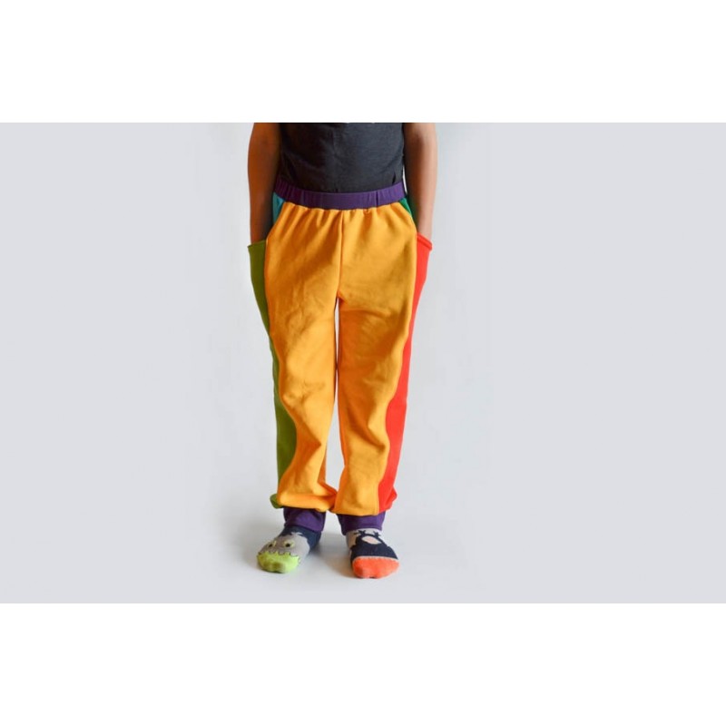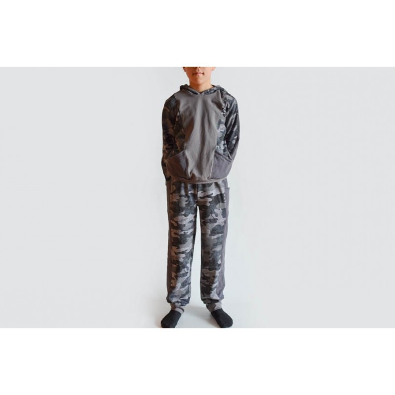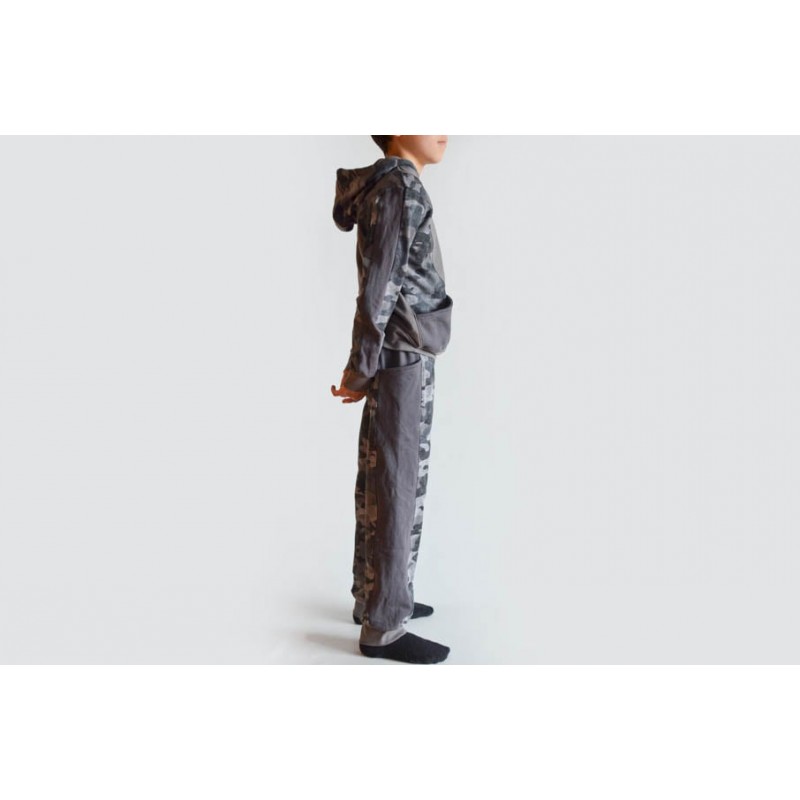 Patrón de los pantalones infantiles Alpha. Pantalones con bolsillos laterales. Bajos y cinturilla con puños. Pareja de la Sudadera Alpha.