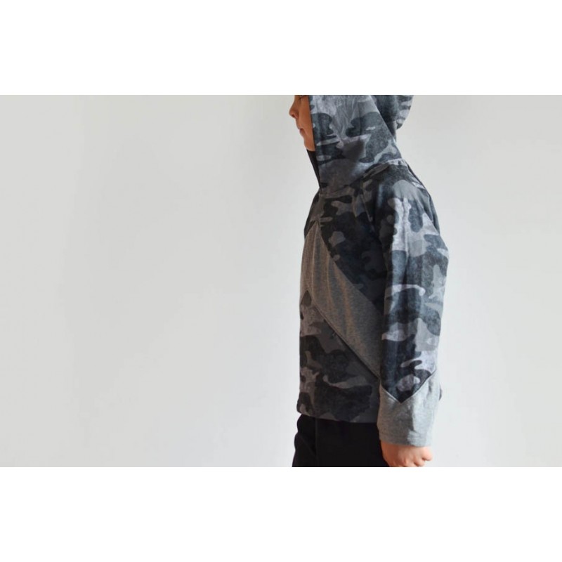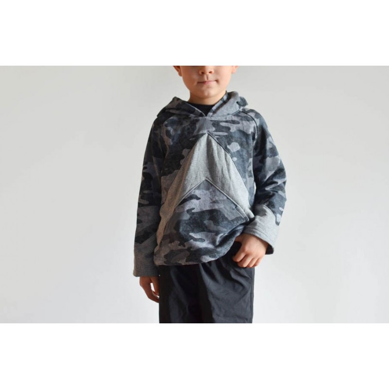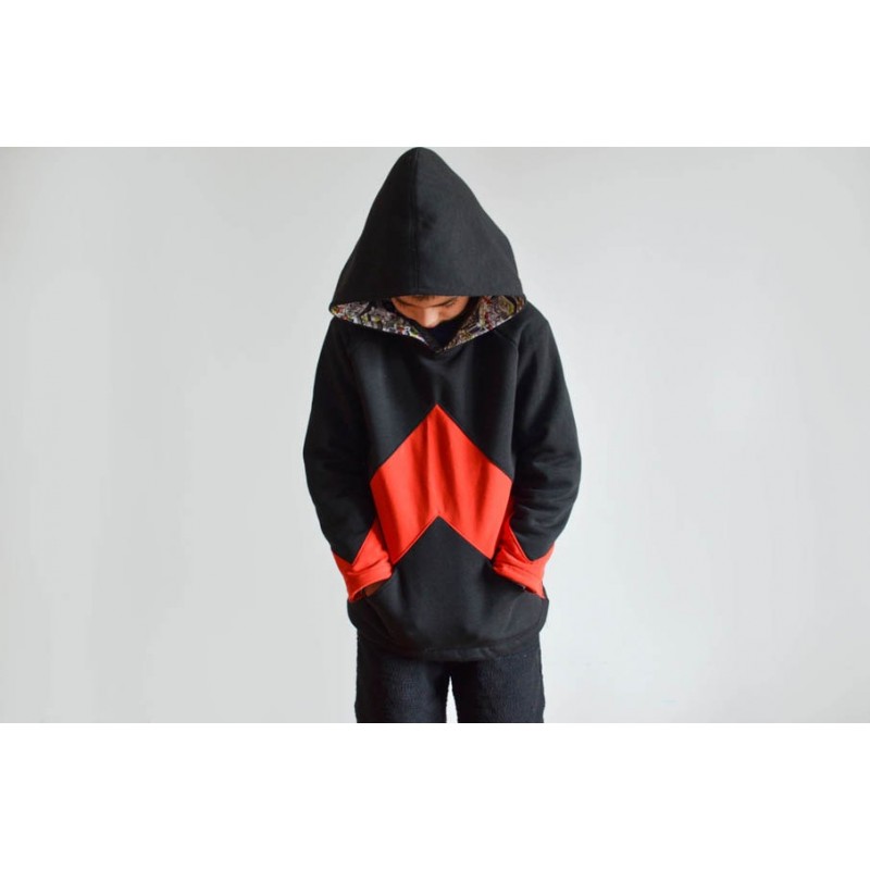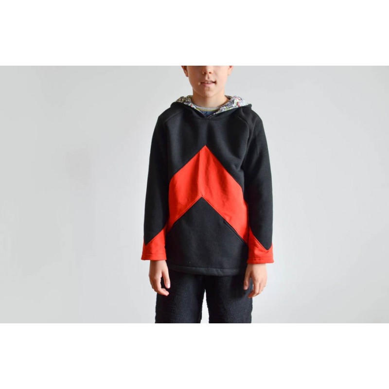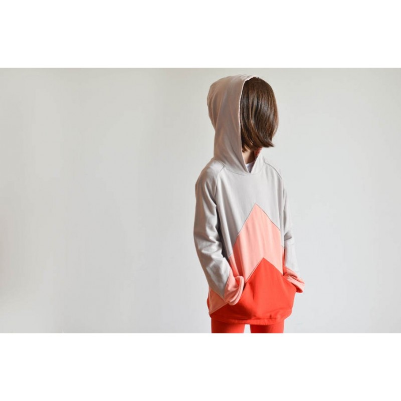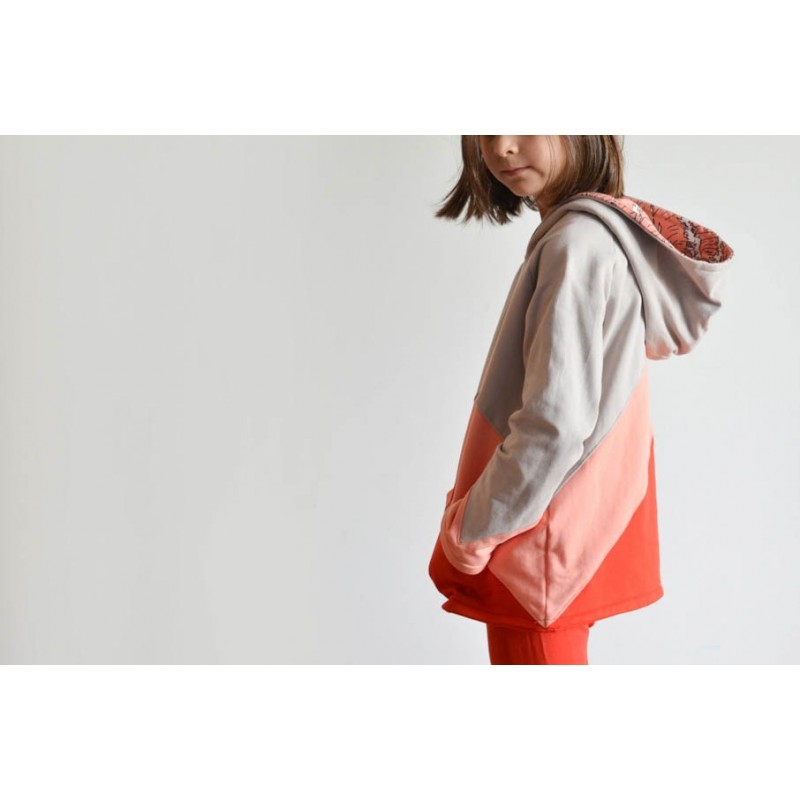 Patrón de la sudadera infantil Uvedoble. Sudadera con capucha y mangas raglán. Bolsillo frontal oculto tipo monje. Pareja perfecta de los Pantalones Uvedoble.