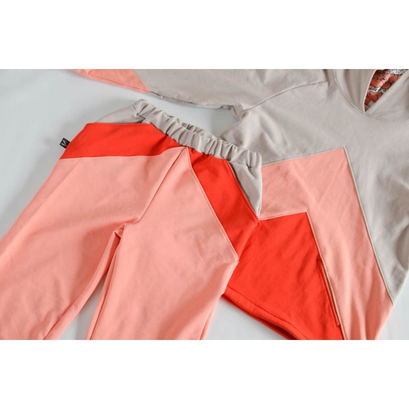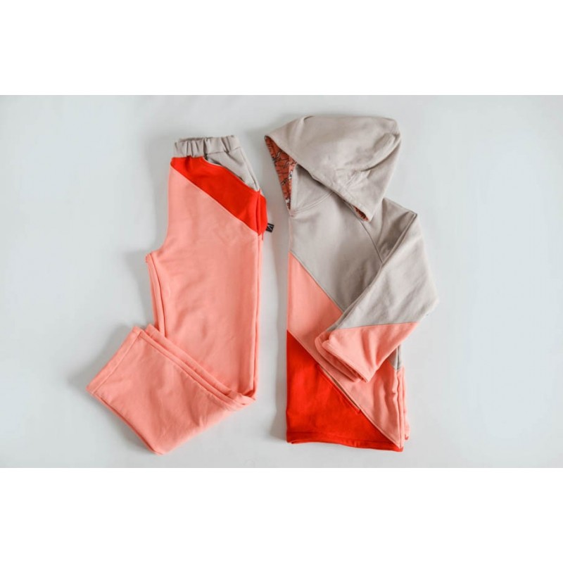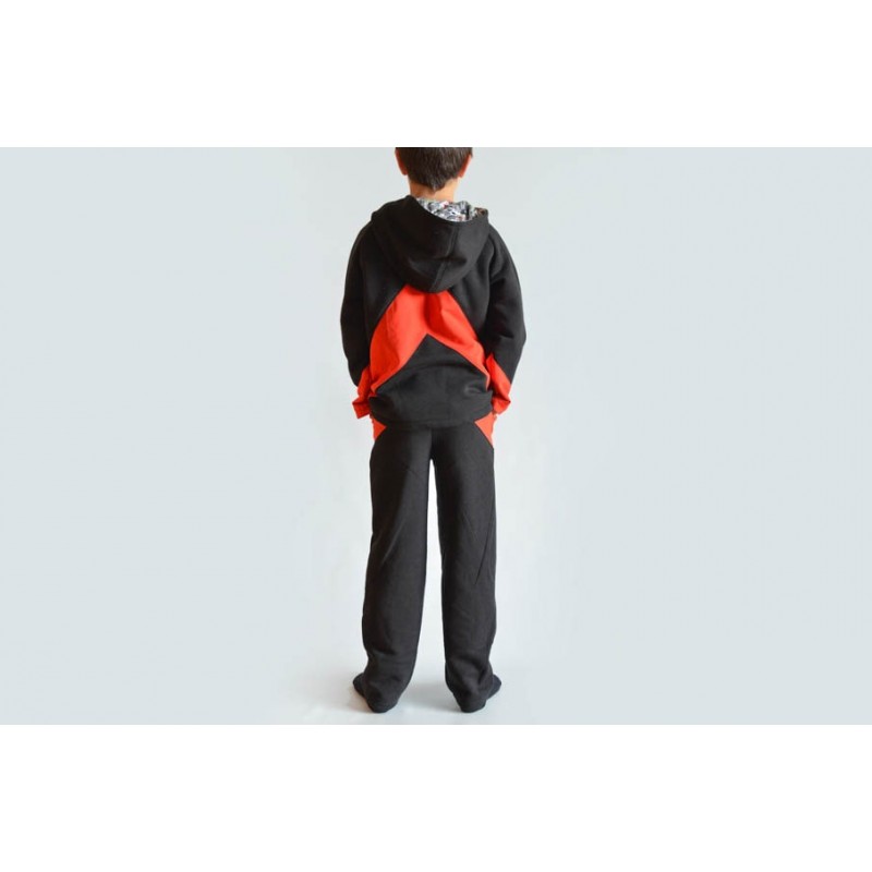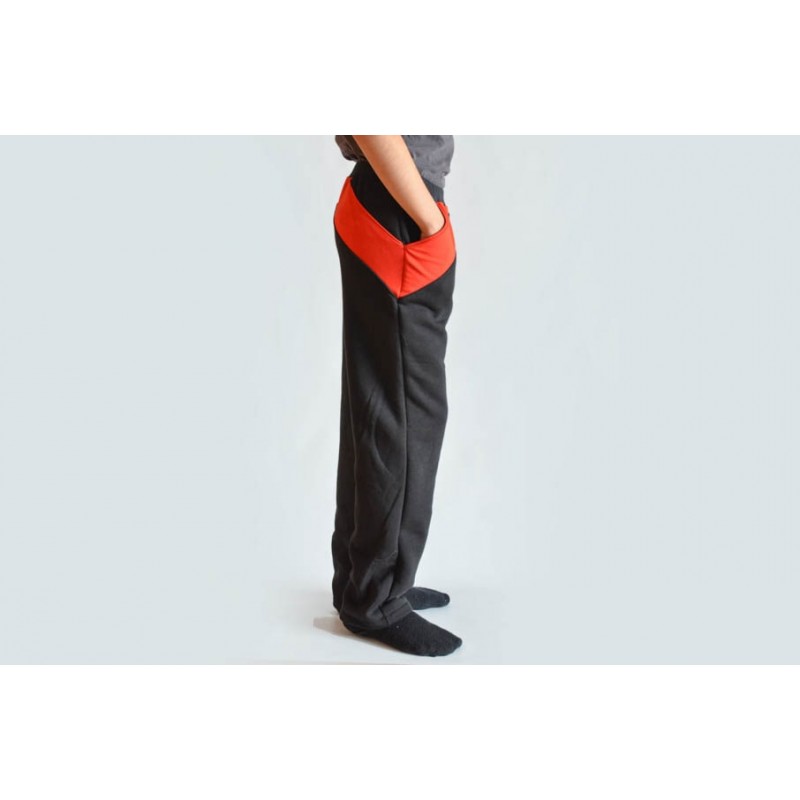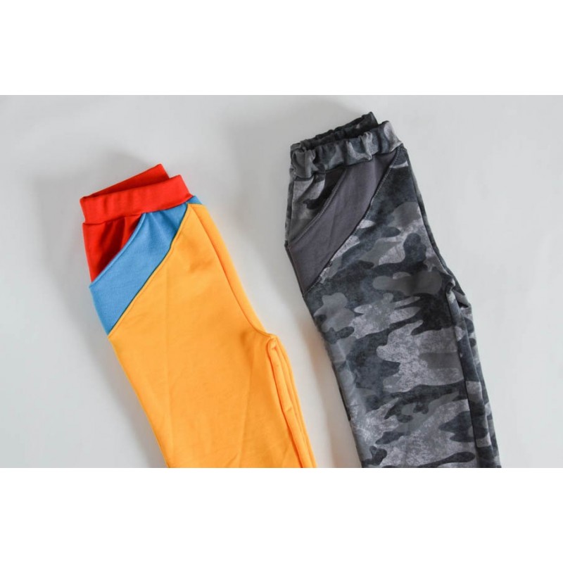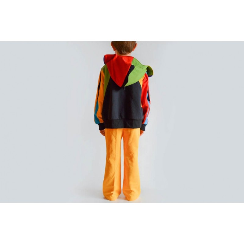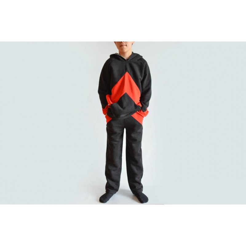 Patrón de pantalones infantiles Uvedoble. Perneras con corte recto, bolsillos diagonales en el delantero y bajo con dobladillo. Pareja de la Sudadera Uvedoble.