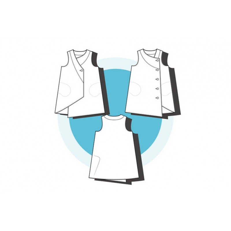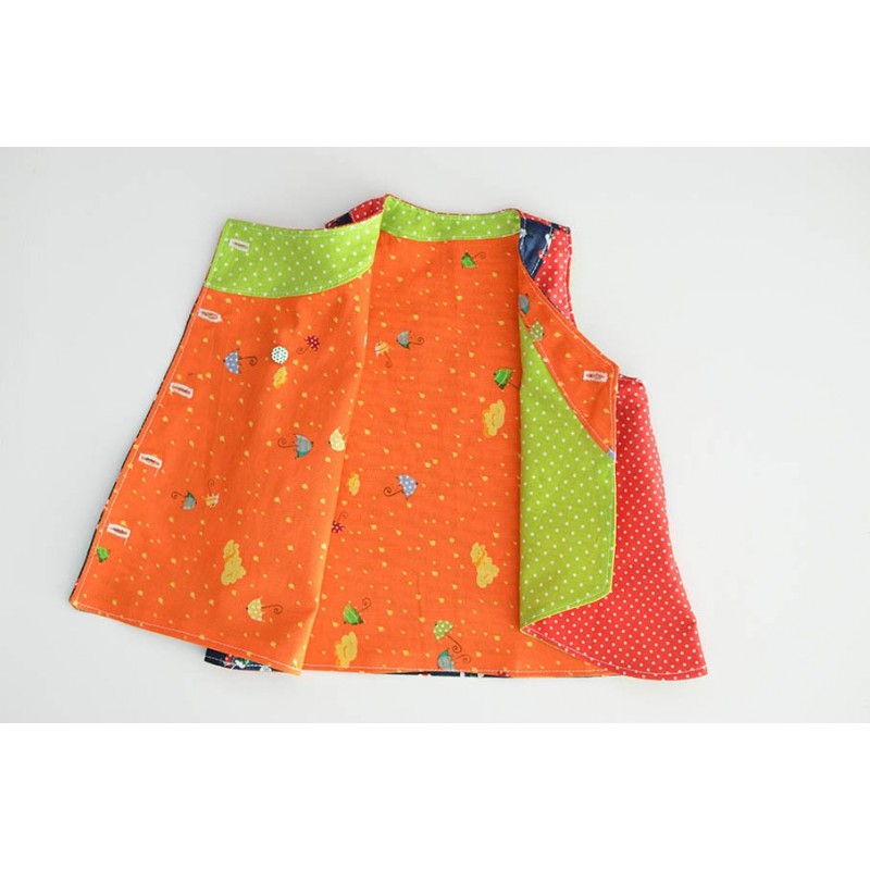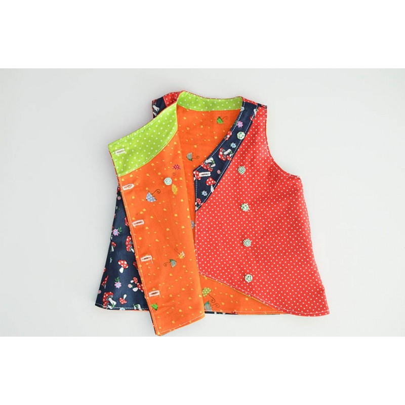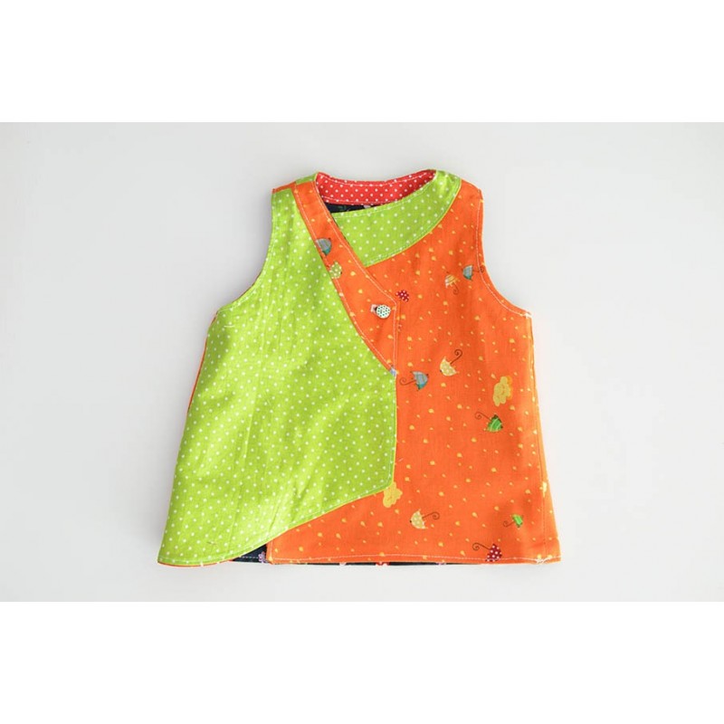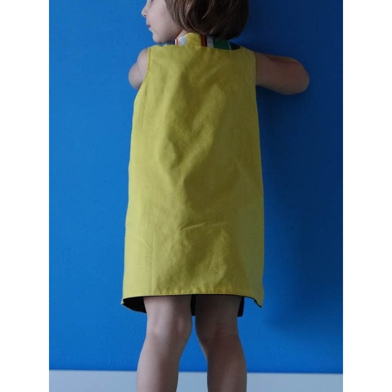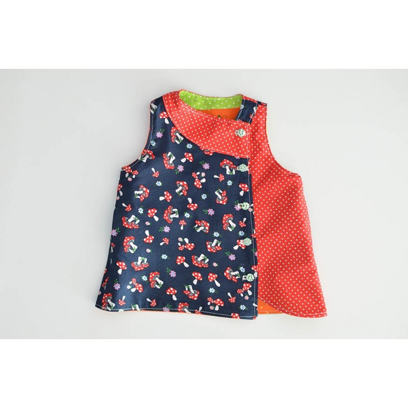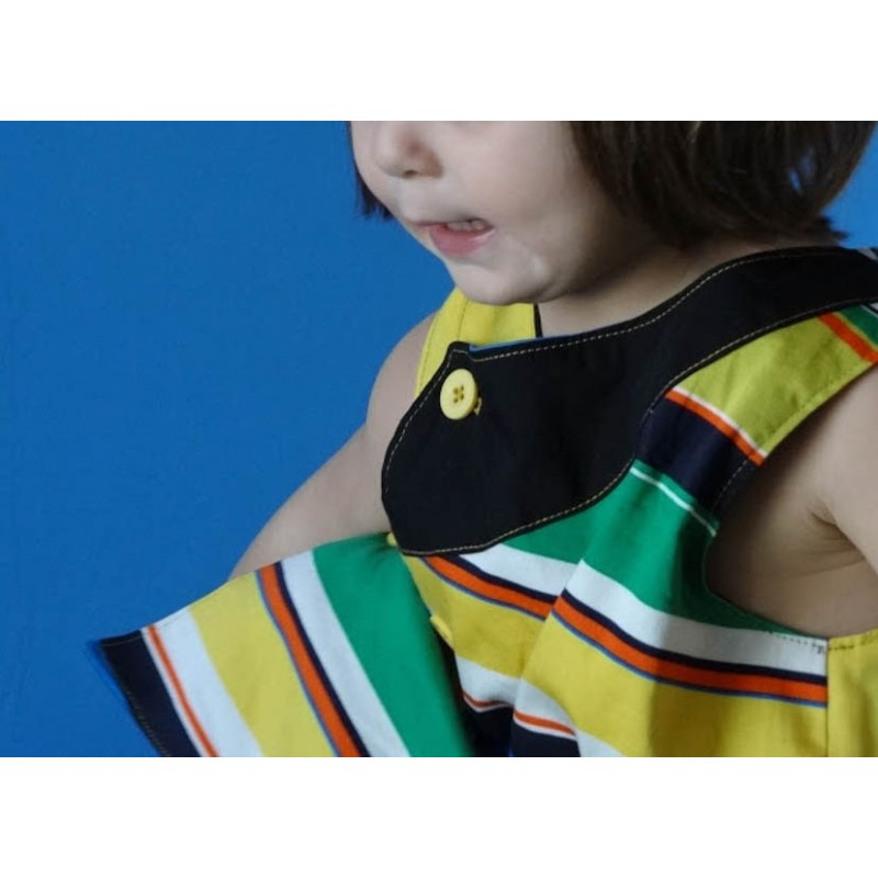 Patrón de vestido infantil Iris. Vestido reversible, asimétrico y con bolsillos laterales.