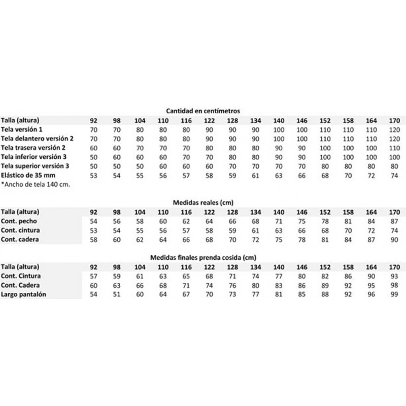 Tallas: de 92 a 170 cm de altura aprox.