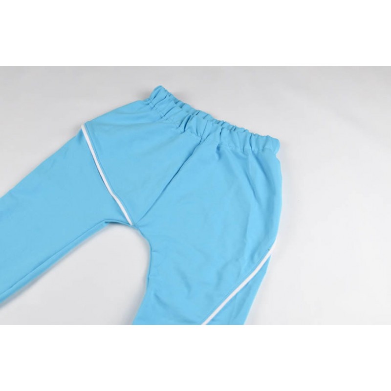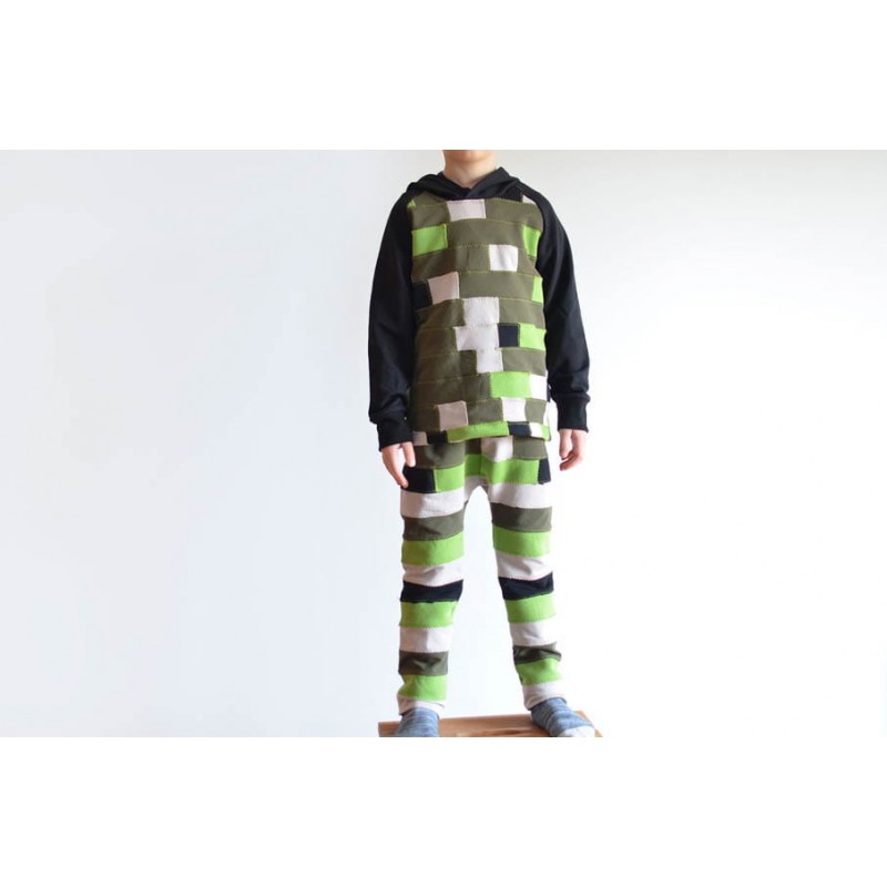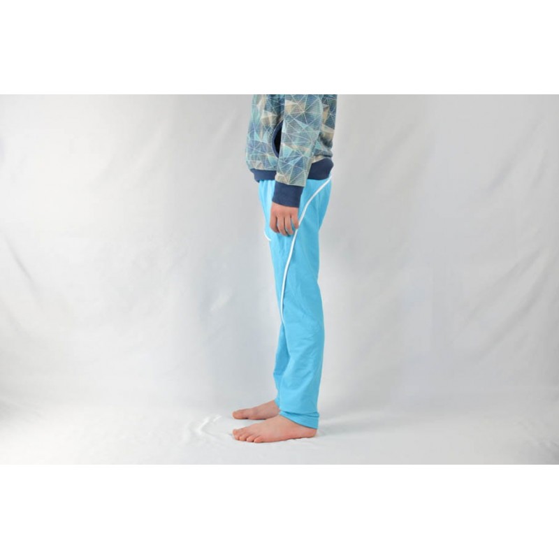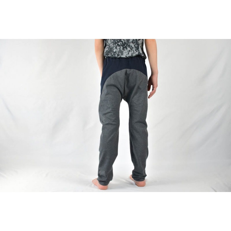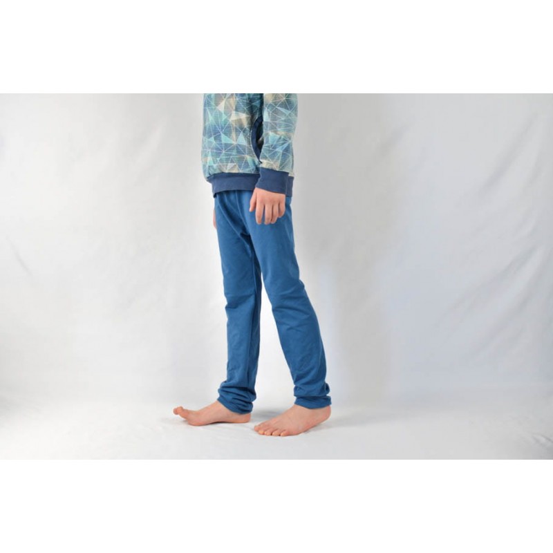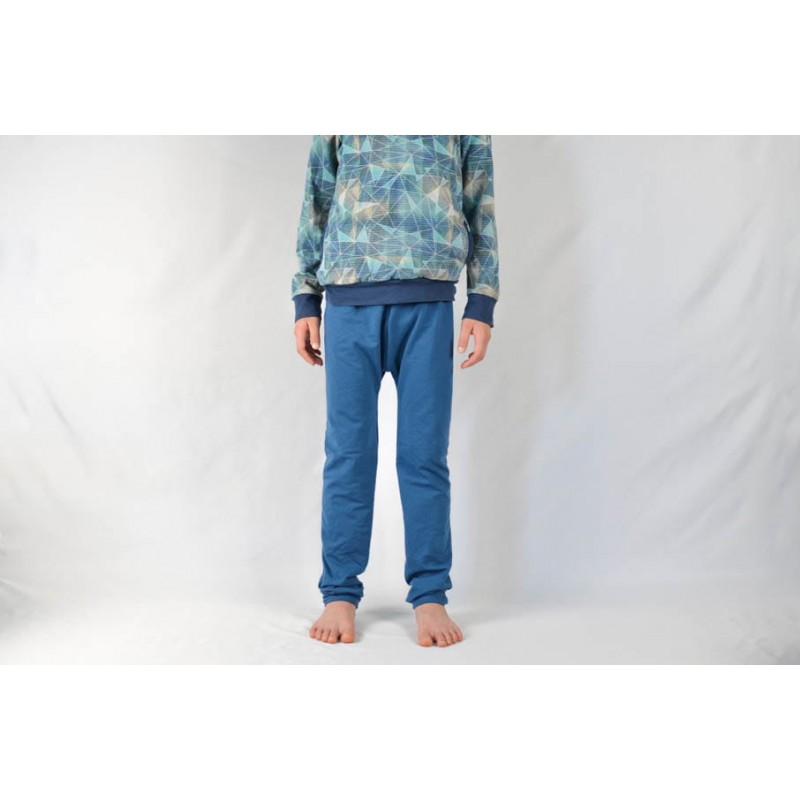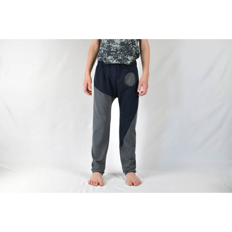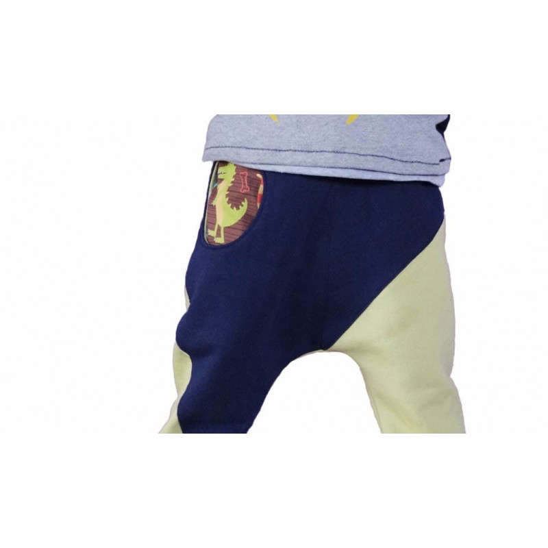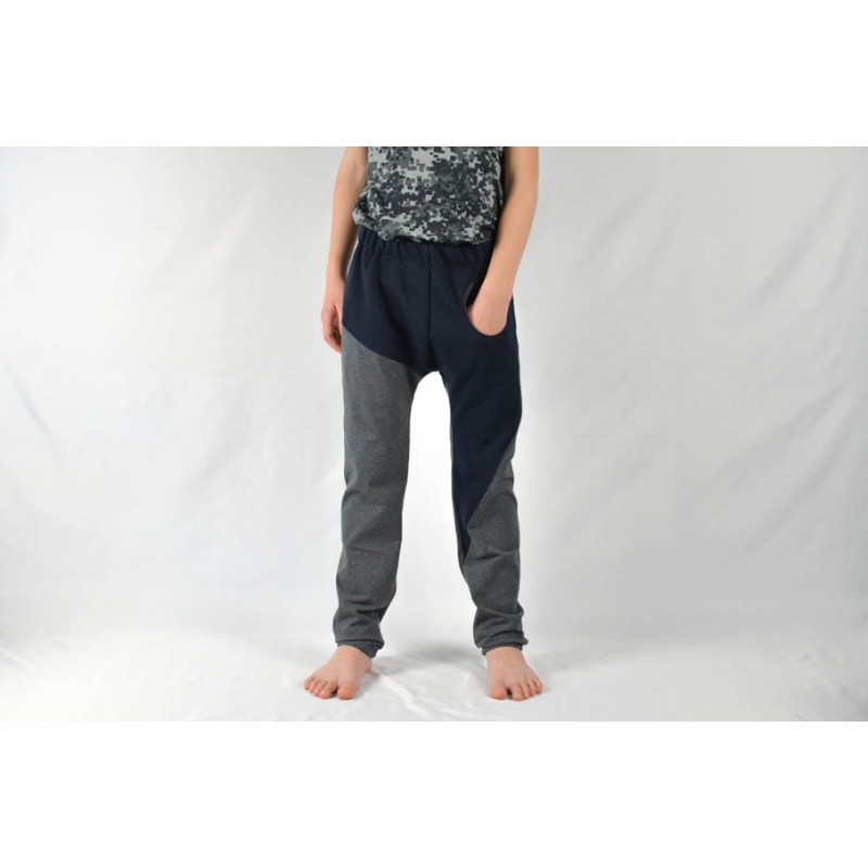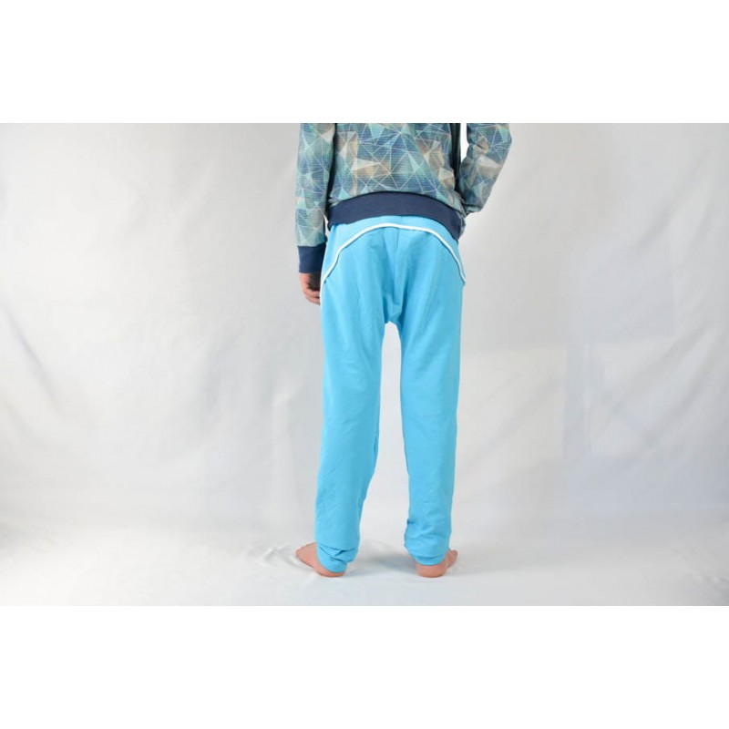 Patrón de pantalones 123 infantil. Pantalones tipo bombacho fáciles de coser y personalizar. Pernera ajustada con tres variantes para usar distintas telas, tiro redondeado y bolsillo frontal. Dobladillos en cinturilla y bajos.