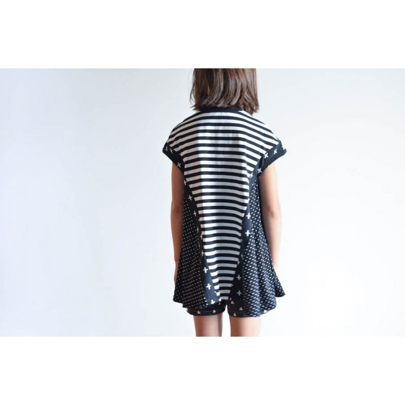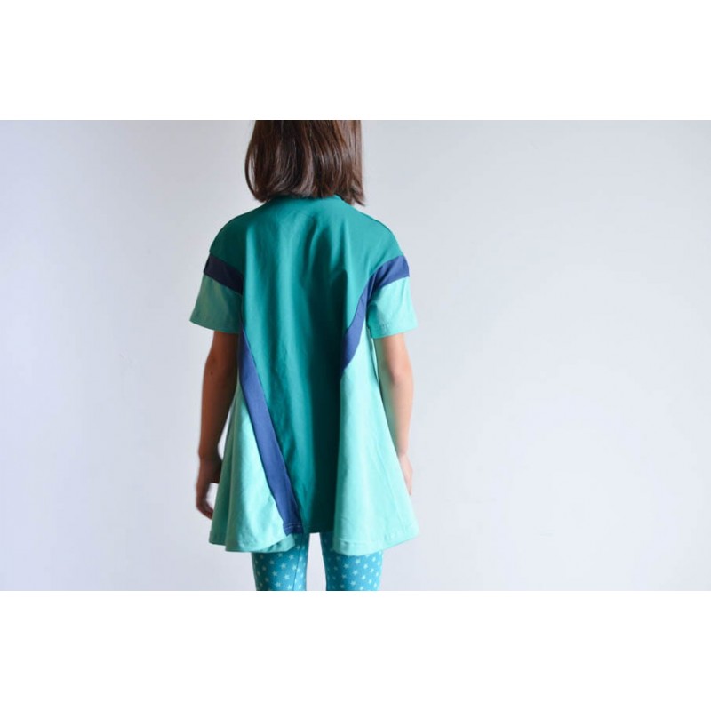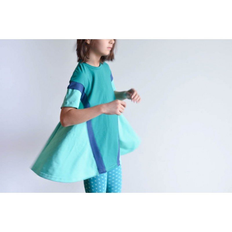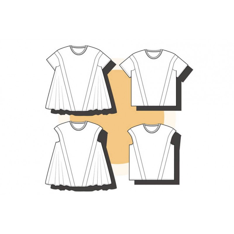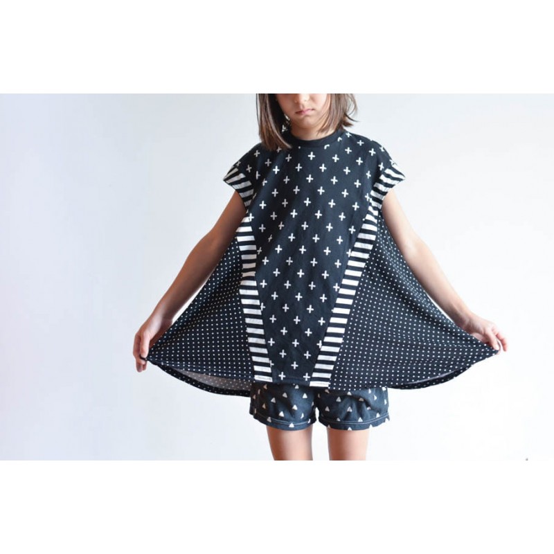 Patrón camiseta y túnica infantil Equis. Versión en manga corta, larga o sin mangas. Paneles para jugar con distintas telas.