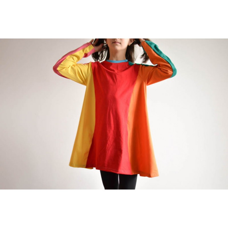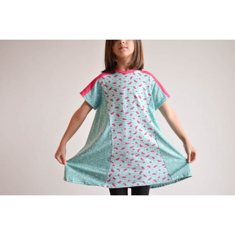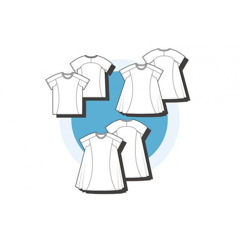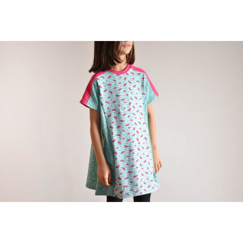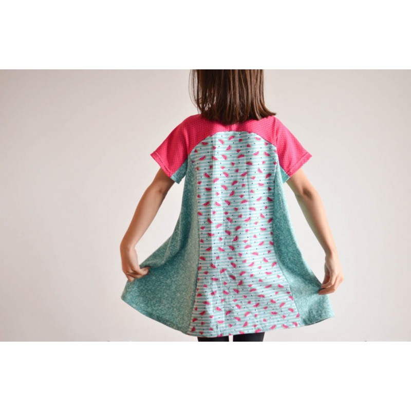 Patrón infantil Raglán Zeta. Camiseta, túnica y vestido con mangas raglán. Tiene divertido patronaje para jugar con distintas telas. Se puede coser en manga corta o larga.