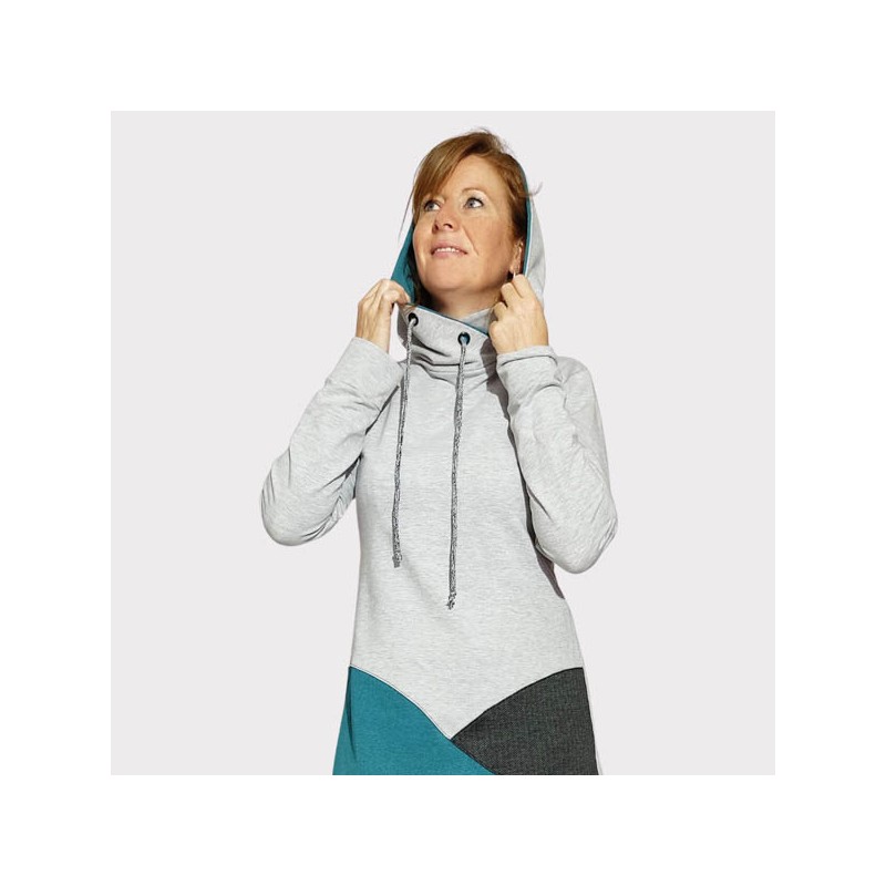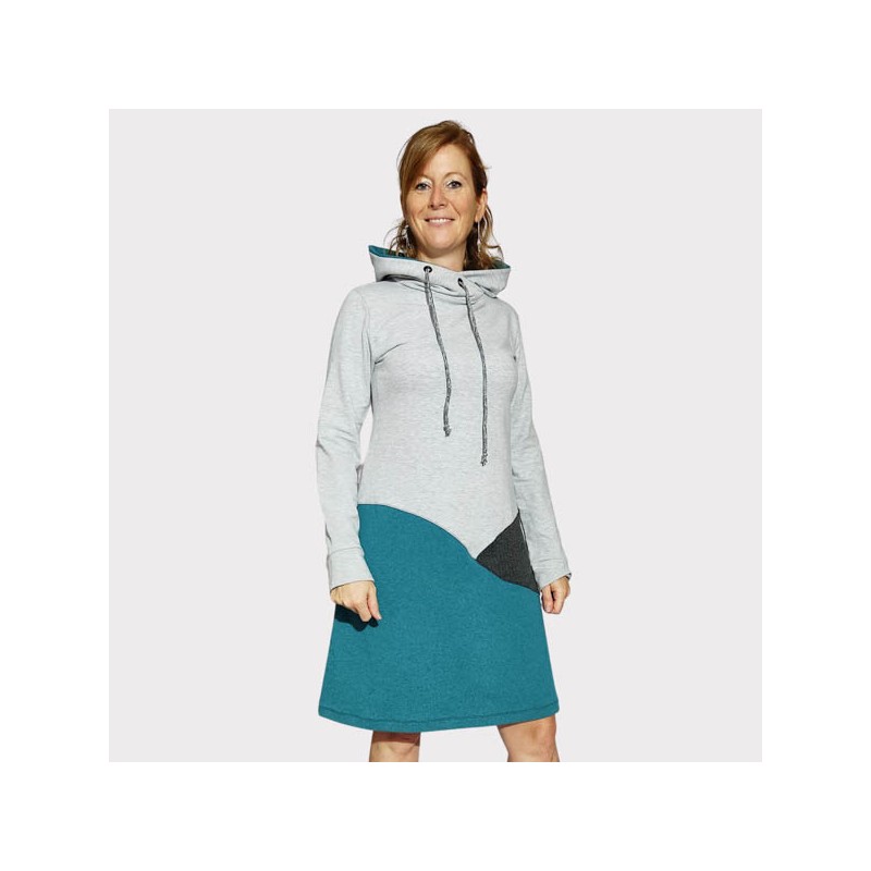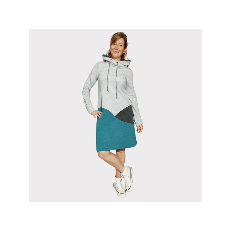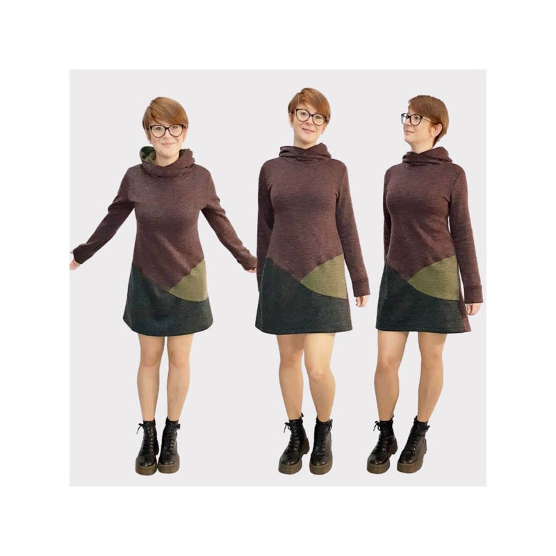Patrón de costura digital para coser el vestido ZigZag con un estilo deportivo, capucha forrada y hermosas particiones, y combina colores y estampados según tu gusto.