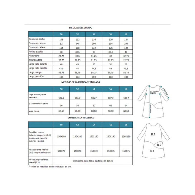 Para este modelo puedes utilizar telas de punto que no sean demasiado finas por ejemplo French Terry, tela de jersey, tela de sudadera. Es importante que tengan un poco de elastano.