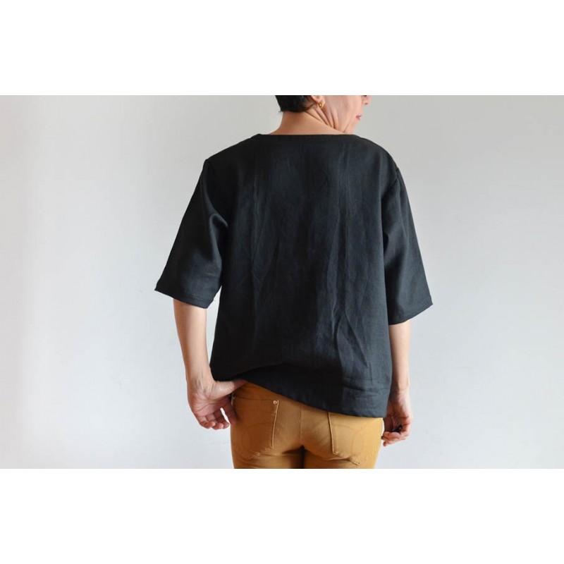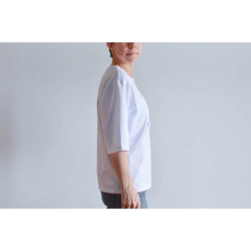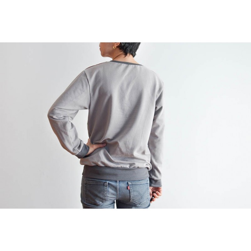 Puede ser cosida en tela de punto o tela plana. Largo hasta la cadera y opción manga tres cuartos o manga larga.