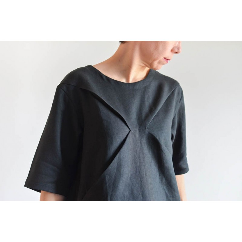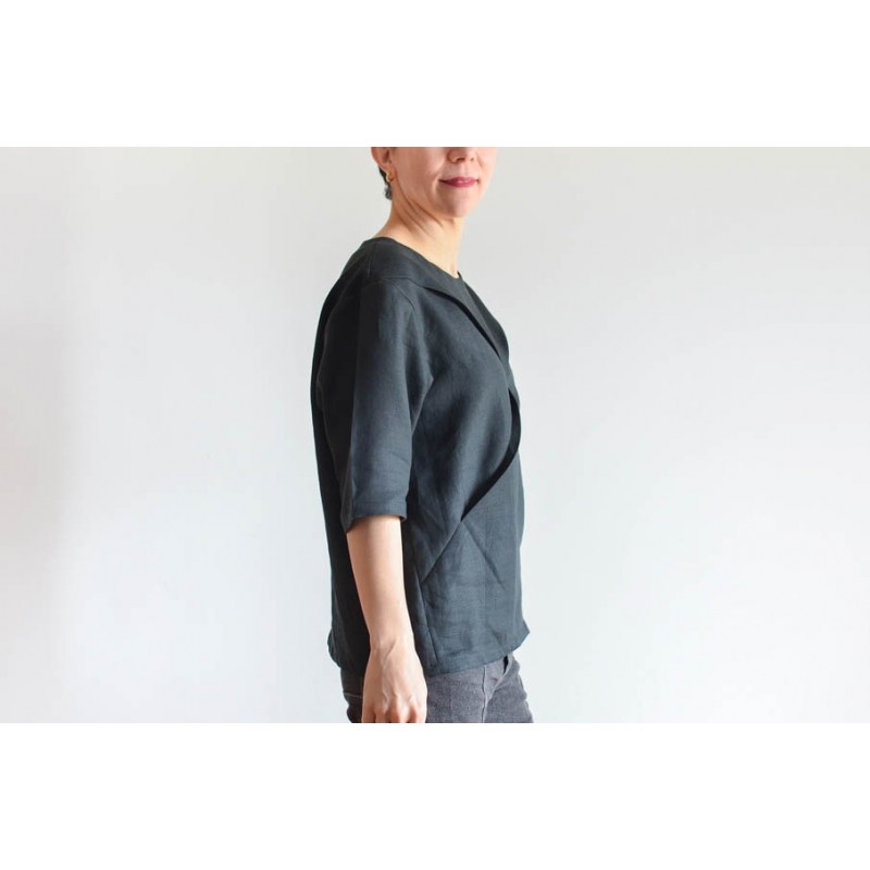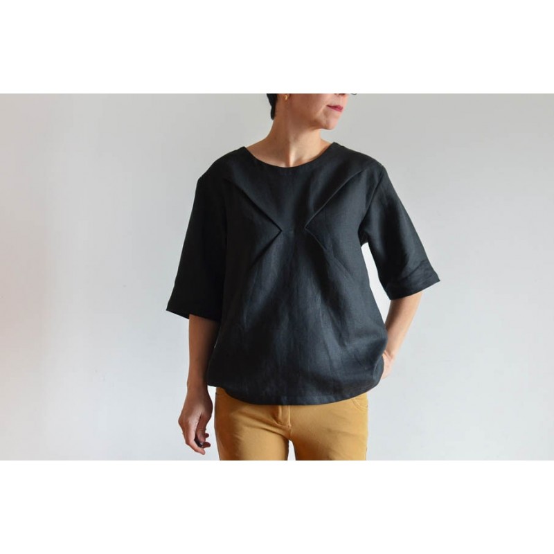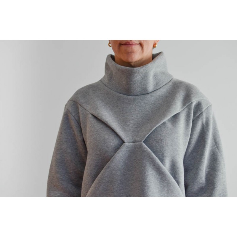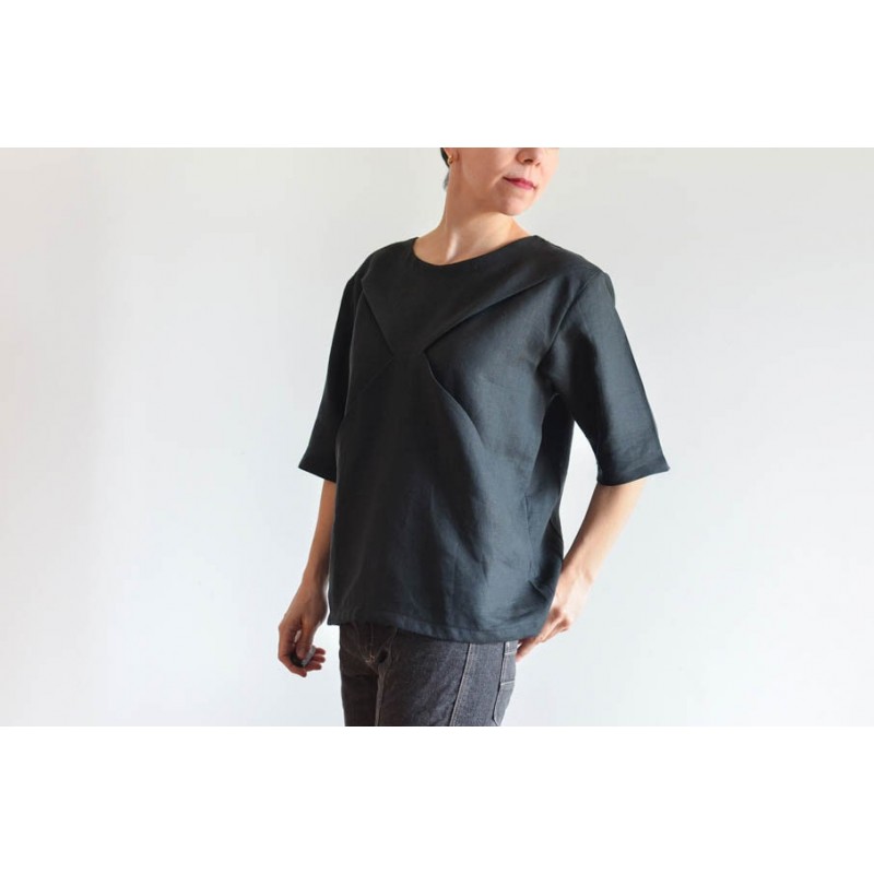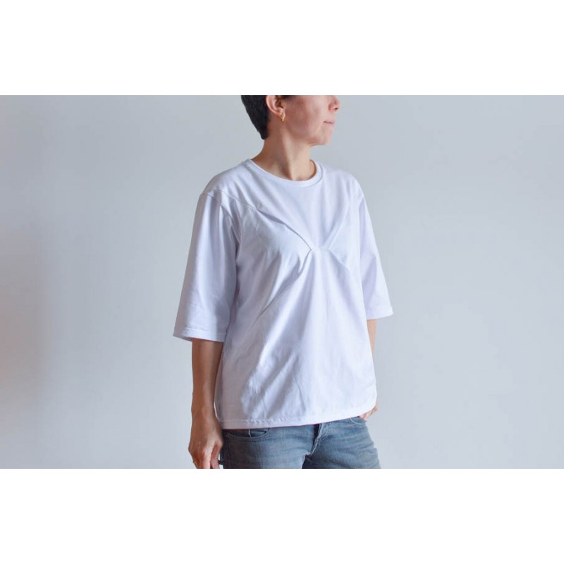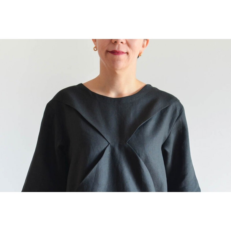 Patrón de adulto Crucis: sudadera y camiseta con manga caída y detalle geométrico formado por pliegues o piezas individuales en el delantero.