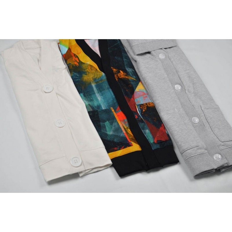 Patrón de cárdigan clásico con corte recto y escote en V con o sin capucha.