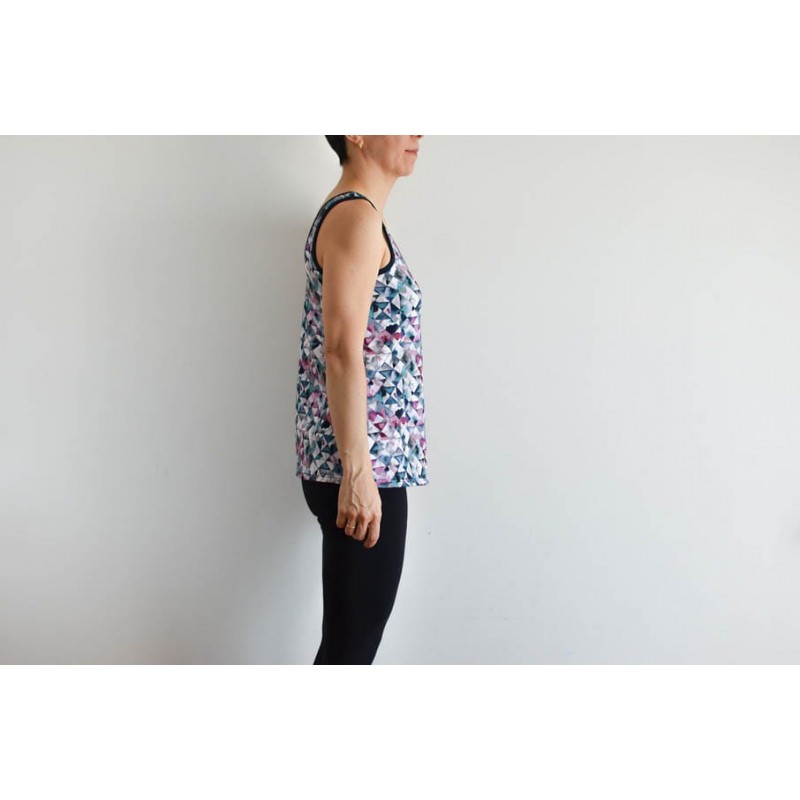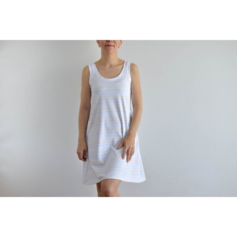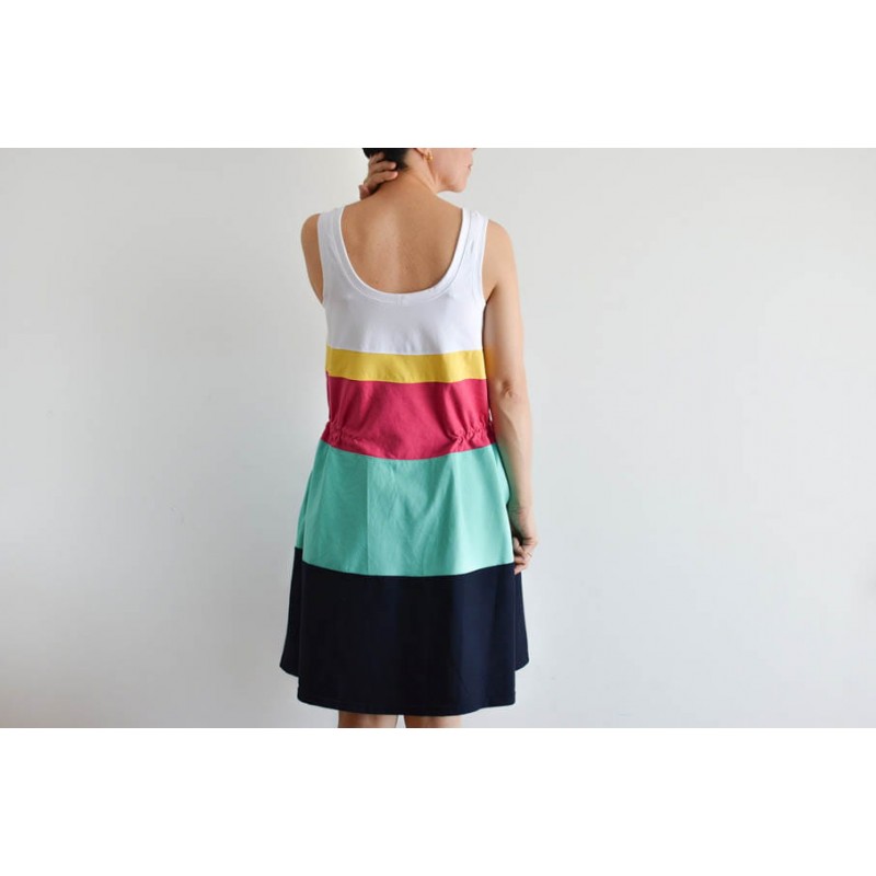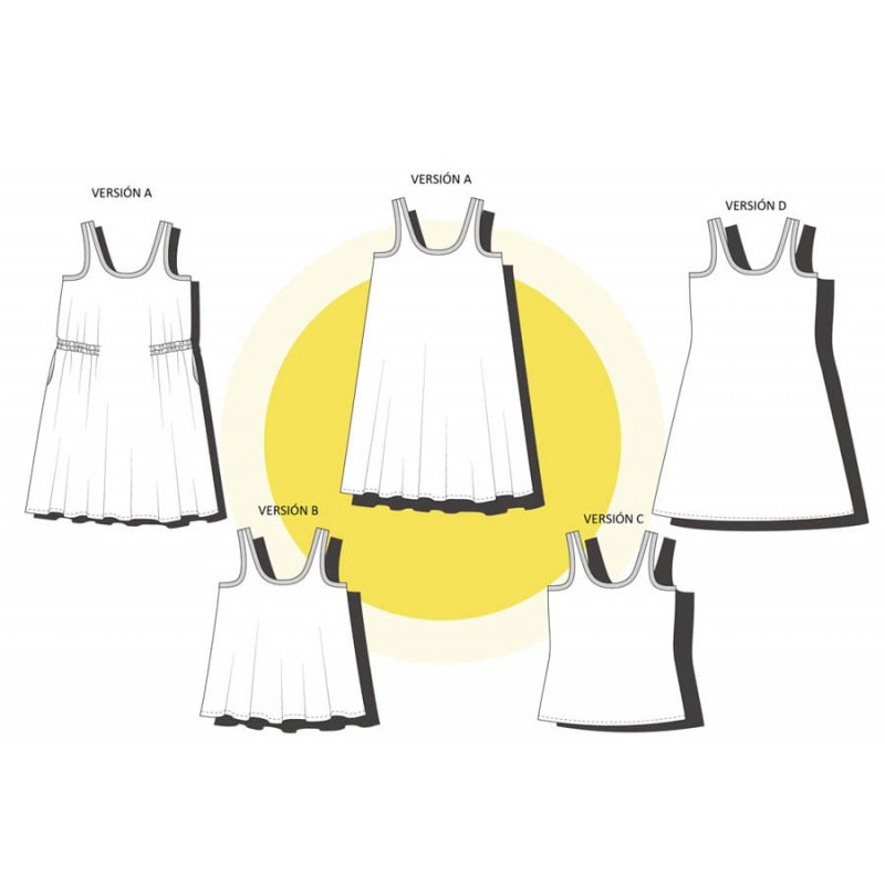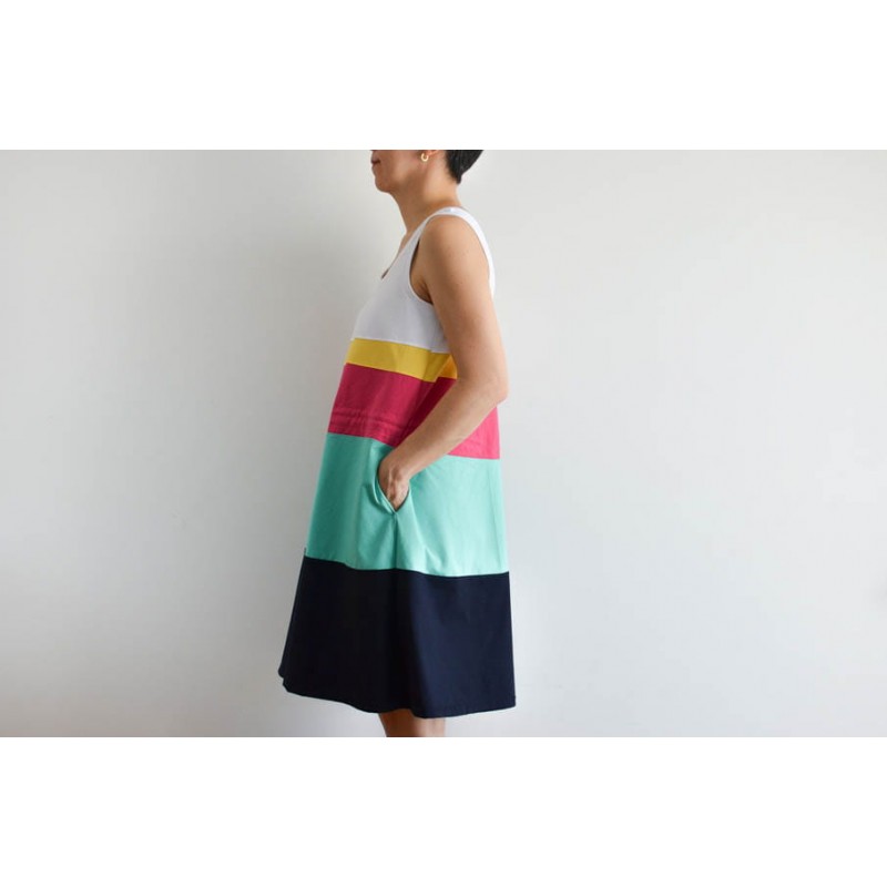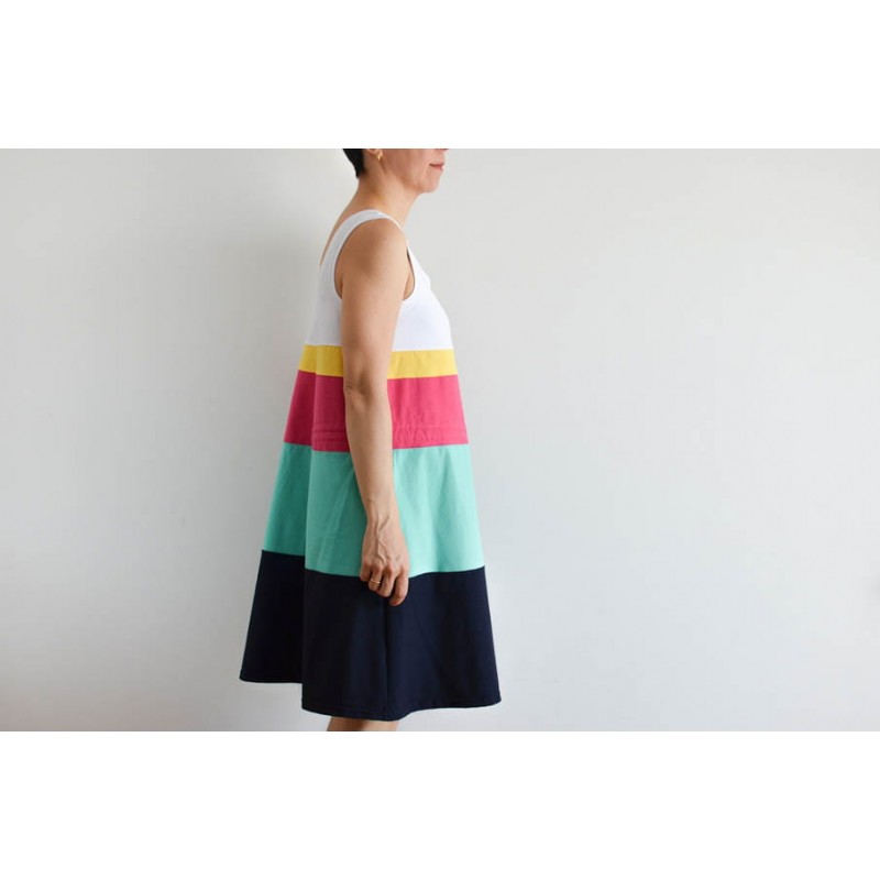 Patrón de adulto Dahlia: vestido y camiseta de tirantes con escote amplio.
