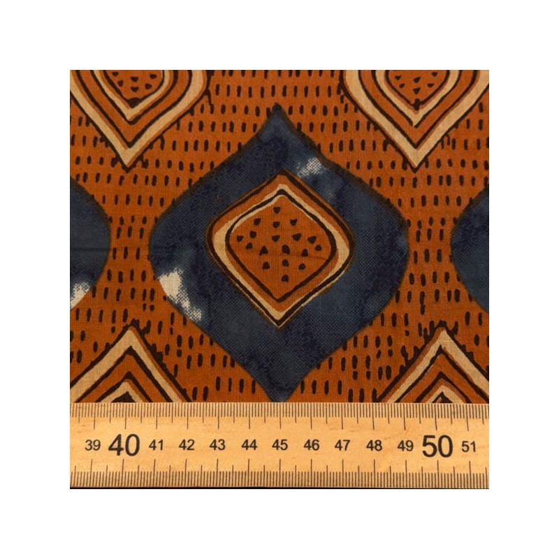 Tela de algodón muy finita y ligera con estampado de inspiración batik con una composición 100% algodón y un ancho de 145 cm. Es una tela suave, sin caida pero no tiesa. El estampado se ve por ambos lados aunque un lado esta más definido que el otro. Ideal para Faldas, pantalones anchos, pareos, pañuelos, blusas ...