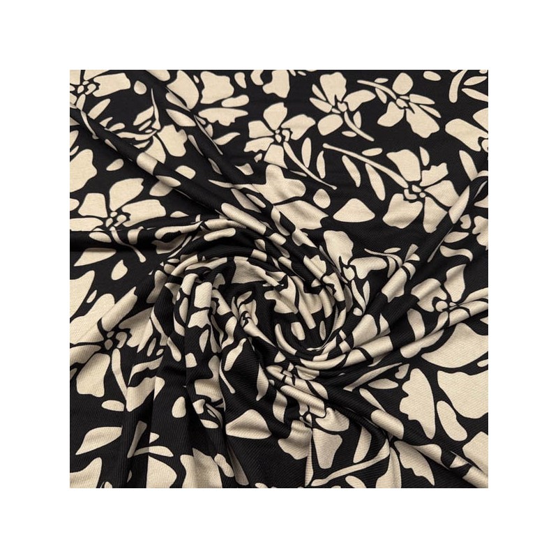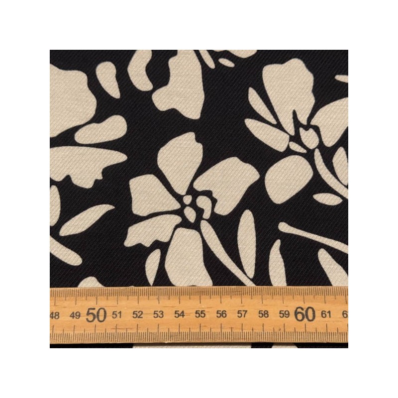 Tela suave, con caida y con ligera elasticidad, con aspecto de sarga con una composición 80% viscosa, 20% poliamida y un ancho de 160 cm. Esta tela tiene textura que recuerda a la de la viyela. Ideal para blusas, vestidos, tops, faldas, pantalones ...