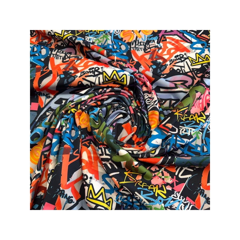 Tela de punto con tacto parecido al punto de neopreno pero mucho más finita con una composición 85% poliéster, 15% elastan y un ancho de 150cm. Ideal para prendas deportivas con cuerpo y soporte, es una tela firme y sencilla de coser, Estampado resistente al roce, sudor y temperatura. Ideal para leggins, tops, mallas, vestidos, danza ...