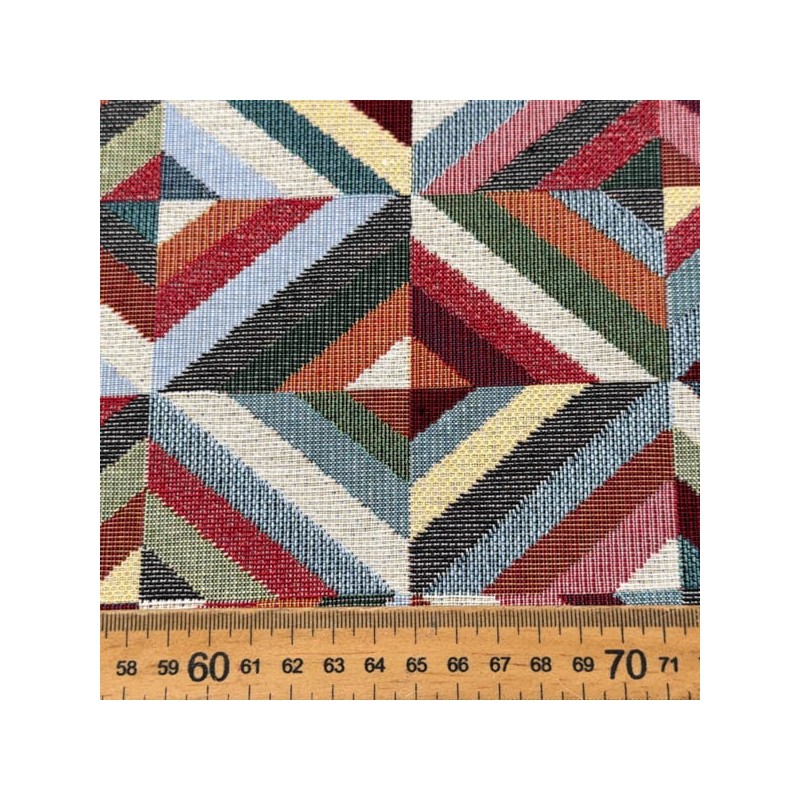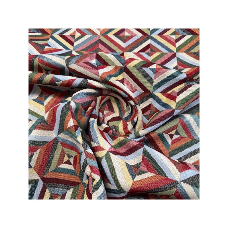 Tela de tapicería tejida formando dibujos con una composición 60% algodón, 40% poliéster y un ancho de 140 cm. Es una tela firme y resistente, el tejido de los dibujos hace que sea reversible. Ideal para bolsos, bolsas, decoración, tapicería, cojines, riñoneras ...