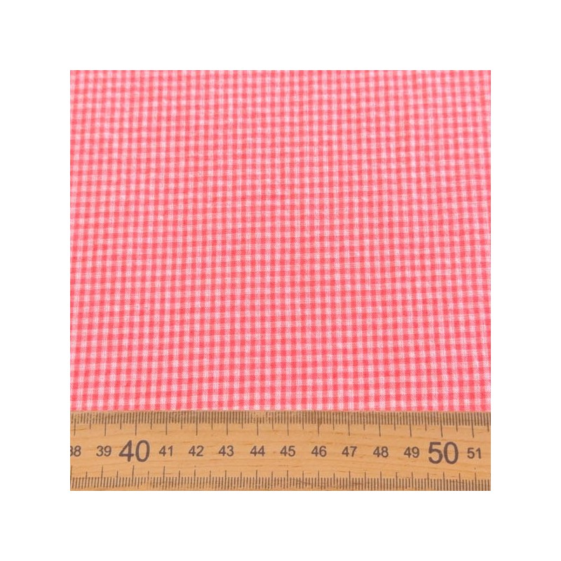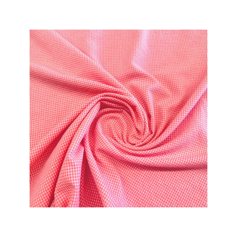 Tela de cuadro tipo vichy con un alto porcentaje de algodón con una composición 70% algodón, 30% poliéster y un ancho de 145 cm. Esta tela al tener el cuadro tejido es igual por las dos caras y tiene un ligero arrugado tipo seersucker. Ideal para faldas, vestidos, ropa infantil, sabanas, cortinas, bolsos, bolsas ...