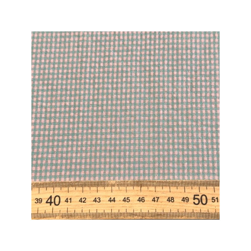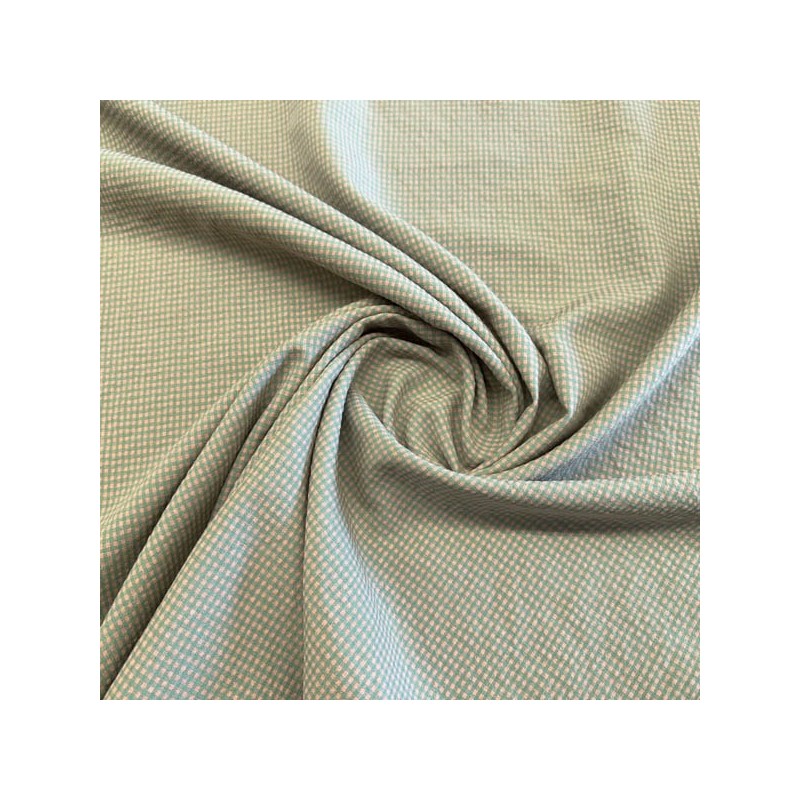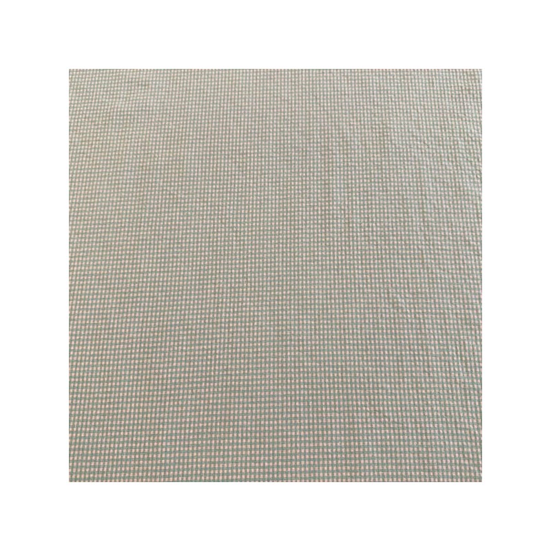 Tela de cuadro tipo vichy con un alto porcentaje de algodón con una composición 70% algodón, 30% poliéster y un ancho de 145 cm. Esta tela al tener el cuadro tejido es igual por las dos caras y tiene un ligero arrugado tipo seersucker. Ideal para faldas, vestidos, ropa infantil, sabanas, cortinas, bolsos, bolsas ...