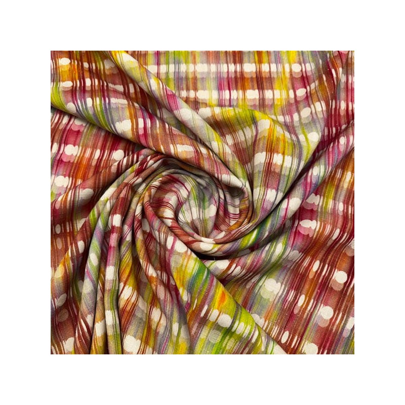 Tela tejida con aspecto y textura de lino pero con la caída de la viscosa con una composición 70% Viscosa, 30% lino y un ancho de 135cm. Esta tela tiene un tacto suave y fresco. Ideal para vestidos, camisas, blusas, faldas, pantalones palazzo, pañuelos ...